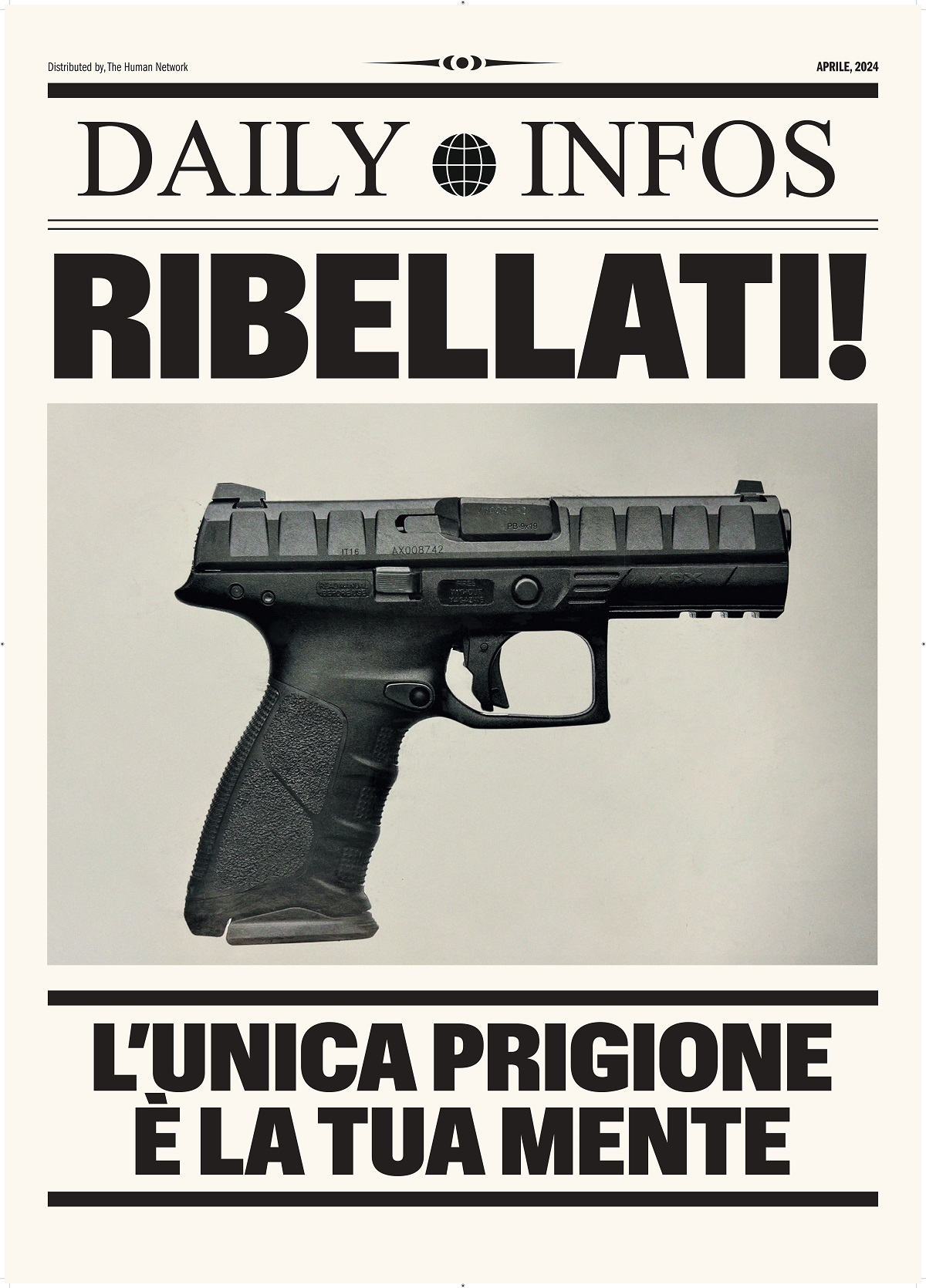 Nell’opera di Cattelan compaiono in primo piano una minacciosa – ma anche drammaticamente elegante – pistola semiautomatica nera e due scritte in grassetto: “Ribellati!” e “L’unica prigione è la tua mente!”. Nel manifesto di Rossetti, invece, un pestaggio di una baby gang contemporanea si sovrappone alla rievocazione delle vicende della Compagnia della Teppa che, dal 1816 al 1821, si rese protagonista di numerosi pestaggi ai danni di cittadini milanesi filoaustriaci.