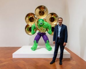 Non è solo la mano dell’artista ma qualcos’altro. Probabilmente Koons si è avvicinato ad una sorta di scorza, ha grattato abbastanza il “fondo”, fino ad arrivare (per paradosso) ad una essenzialità che attraversa e dismette ogni supporto materico. Cosi che i vari richiami alla cultura pop, alla sessualità, ai surrealismi e al packaging da shopping mall sembrano tutti in fondo specchietti per le allodole per i nostri occhi, catturati e travolti, incapaci di sezionare, dividere e definire. Nella luce accecante come nel buio più impenetrabile. Appunto una shine, una brillantezza che può trasformarsi rapidamente in oscurità profonda, in “shining”. Un flusso inconscio, telepatico, una presenza spettrale che infesta, quasi una “capacità di immagazzinare e rilasciare spiriti” nei gonfiabili in cui l’ artista rivive e ricompone i traumi della separazione dal proprio figlio (Balloon Dog/Red – 1994/2000, Hulk/Tubas-2004/2018, Lobster – 2007/2012).