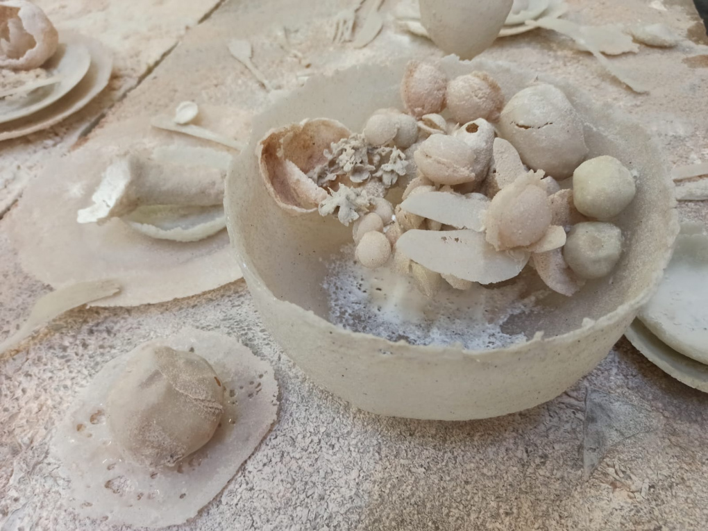 Al ciò che resta qui si sostituisce la riflessione cristallizzata del ciò che sarebbe potuto essere: un pasto sospeso, un raffinato omaggio a tutti quei commensali il cui destino ha impedito il pasto. Essa è un elegante memento mori. D’altronde, i processi di medicina palliativa per malati inguaribili che la Fondazione Hospice MT. Chiantore Seràgnoli di Bologna, anche pediatrica, sostiene, impongono un alto grado di delicatezza e consapevolezza, una presa di coscienza più matura di ciò che significhi irreversibilità della morte, garantendo un fine quanto più dignitoso possibile.