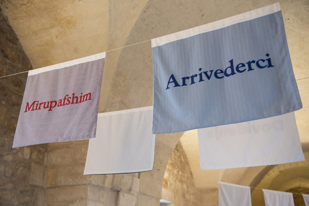 La contaminazione, il superamento dei confini geografici e dei limiti del pensiero, è al centro della riflessione di Gabriella Ciancimino. In Si siz/sea seeds l’artista compone una mappatura delle piante che crescono sulle coste, un itinerario vegetale capace di parafrasare quello umano nel suo continuo adattarsi e ricentrarsi. All’idea dello spostamento e del confronto perpetuo rimanda anche Arrivederci di Ettore Favini. Al centro della riflessione è ancora una volta il Mediterraneo che unisce e divide. Declinando la parola “arrivederci” nelle 19 lingue che si affacciano nel grande bacino, l’artista sintetizza in un’unica installazione la divisione tra le comunità che lo popolano ma nella formula del saluto rievoca anche la possibilità di un nuovo incontro, rivelando nell’apparente divisione la concreta possibilità di una concordia e di una fattiva collaborazione. Il Mediterraneo è protagonista anche in Sea grammar di Runo Lagomarsino. Un’ideale grammatica marina è resa attraverso la crescita progressiva di fori sull’immagine del mare. Una combinazione mutevole che disegna una geografia mai statica, in cui le fratture compromettono l’unità ma si rivelano anche punti di luce attraverso cui ricomporre l’immagine, la stessa o una diversa. Chiude il percorso il video Storia di un albero di Flatform. Dedicato alla quercia vallonea di Tricase, l’opera riflette sulla successione e sull’incontro di genti nel territorio salentino. Tanti individui, tutti con culture, esperienze e lingue diverse, ma accomunati dal medesimo approdo, rappresentato dal maestoso albero sotto le cui fronde la vita continua a scorrere, sempre uguale eppure sempre diversa.