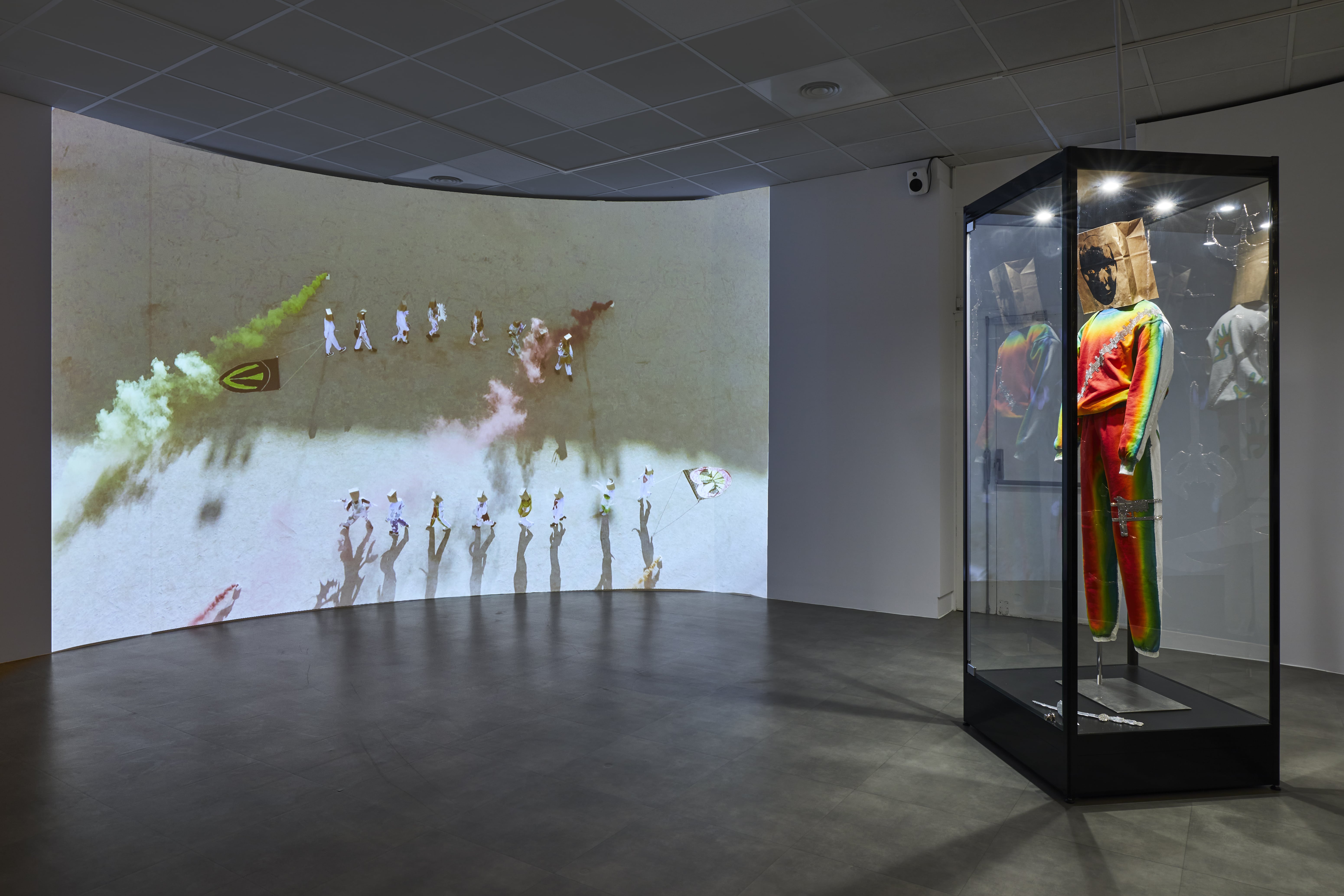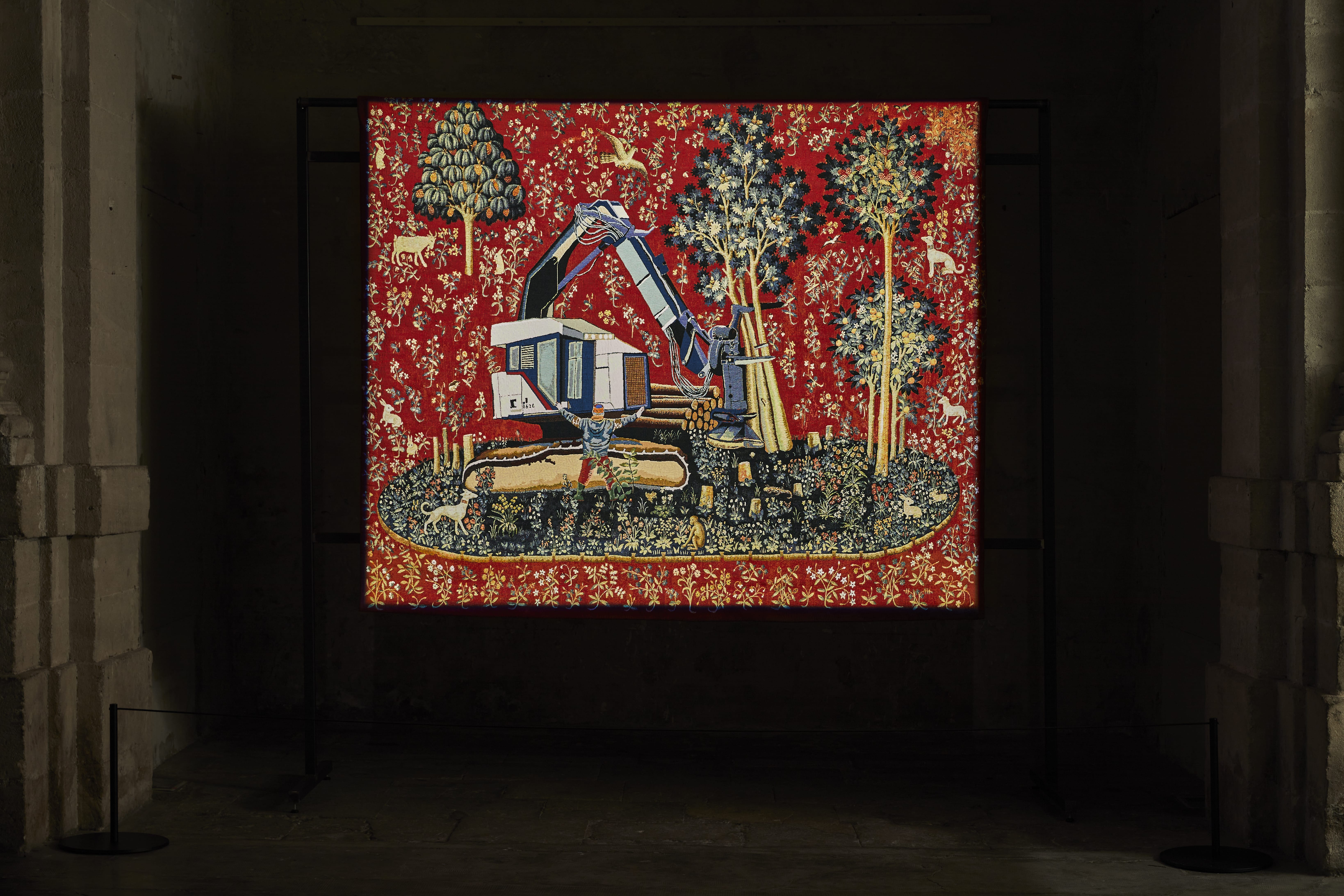 Abitare la foresta è il titolo che raggruppa le creazioni di June Balthazard e Suzanne Husky, presso la Cappella dei Gesuiti, un importante monumento storico del 1678. Qui troviamo Millennials, un film che la regista Balthazard ha realizzato con un gruppo di bambini del Morvan, una piccola catena montuosa situata nella regione Bourgogne-Franche-Comté. È la storia di una comunità di ragazzi che decidono di vivere nei boschi per combattere la deforestazione sotto l’indifferenza degli adulti. Ispirato in parte al movimento Youth for Climate, avviato da Greta Thunberg nel 2018, e alle azioni di attivisti ambientali, il film guarda anche alla leggenda medievale di una crociata di bambini che avrebbe avuto luogo nel 1212. Parallelamente sono presentate diverse opere di Husky come una capanna realizzata con rami d’albero, per un omaggio all’attivismo ecologico.