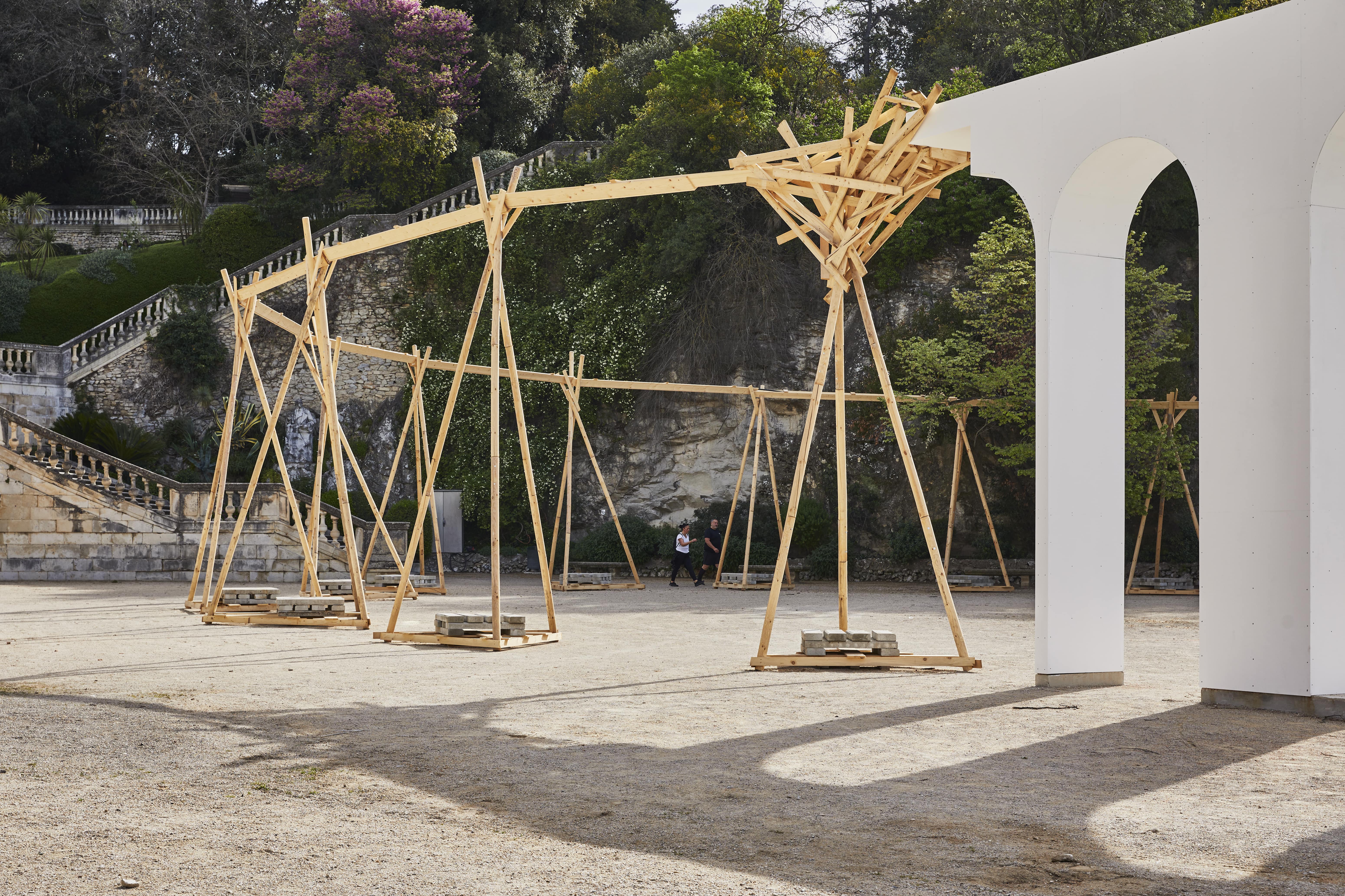 Interessante il film La Promesse di Rayane Mcirdi qui spalleggiato dal regista francese Virgil Vernier, come la scultura monumentale e interattiva, sita nella Place du Chapître, di Caroline Mesquita e Laure Prouvost per un invito al gioco e alla convivialità. Il dialogo tra Feda Wardak e Tadashi Kawamata, entrambi architetti e artisti, ha dato vita a un’installazione monumentale lignea che si disloca lungo i Jardins de la Fontaine, composta da una fantasiosa grondaia color legno che si riallaccia a un maestoso acquedotto bianco da cui fuoriesce un’esigua cascata d’acqua.