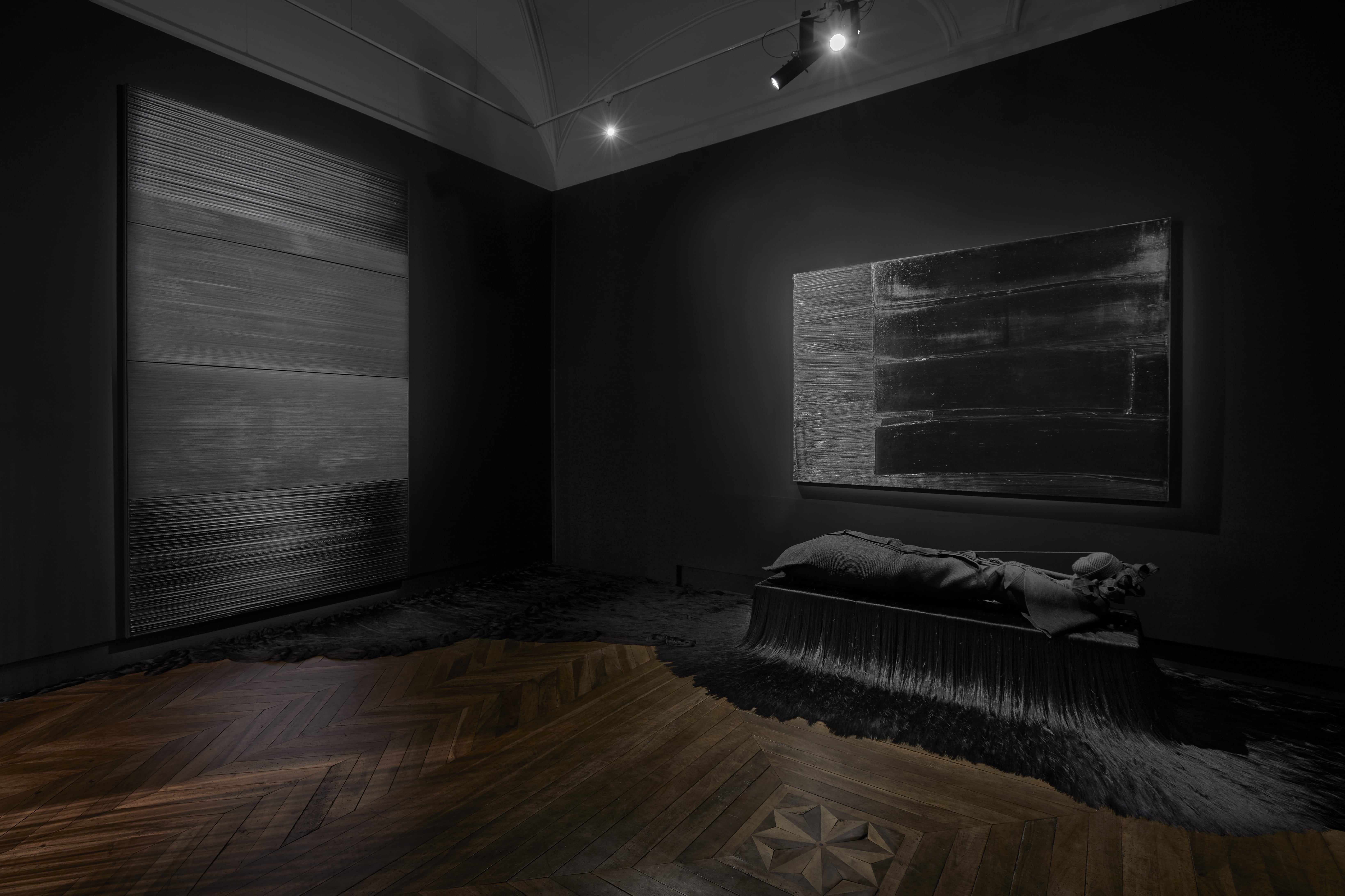 Sono diversi i luoghi emblematici della città coinvolti, dal museo della Romanità all’anfiteatro romano (70 d.C.), uno dei monumenti antichi meglio conservati in Europa, che accoglie il lavoro di Aïda Bruyère in dialogo con quello di Judy Chicago. Il Musée du Vieux Nîmes presenta le superbe sculture tessili monocrome bianche o nere di Jeanne Vicerial, che guardano al corpo umano e al vestimentario, omaggiando la grande pittura di Pierre Soulages, scomparso di recente. La luce è la protagonista in questo faccia a faccia inedito, che prende vita nella stratificazione tessile in Vicerial o in quella pittorica di Soulages per il quale il nero, o meglio l’Outrenoir, come lo definiva l’artista francese, «Cessa di essere tale per emettere chiarezza e luce segreta». A proposito di tessile, ricordiamo che a Nîmes è nato il tessuto dei jeans: infatti, la parola denim non è altro che una contrazione di “de Nîmes”.