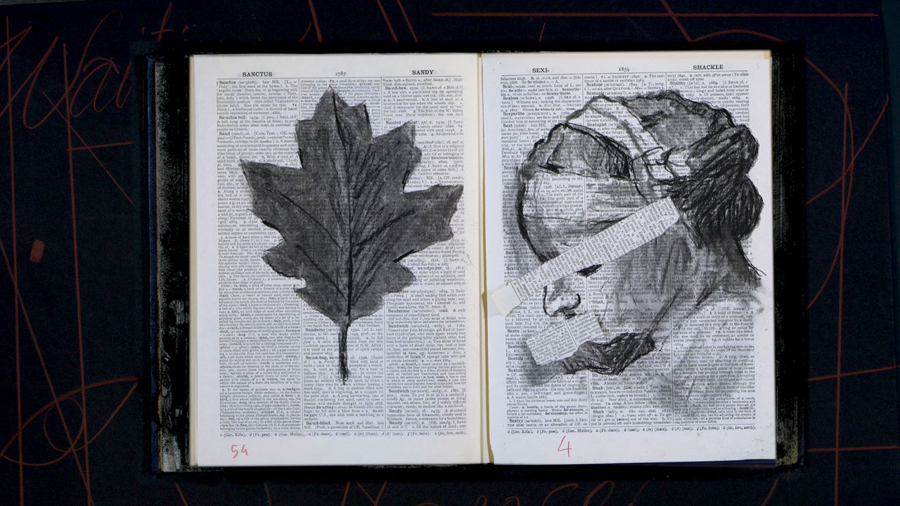 Con uno strumento avvolgente come il video, Kentridge definisce una rappresentazione in movimento frenetico sulle pagine sfogliate di un flipbook, pagine di vecchi libri tra cui antiche edizioni della Divina Commedia, ritmato dalle composizioni vocali del musicista e coreografo Nhlanhla Mhalangu. Con carboncino e inchiostri di china e d’India tratteggia figure femminili che danzano in costumi evanescenti che si rimescolano per evocare antichità e tribalismi; le stagioni della natura scivolano su alberi con rami e foglie nere che si scompaginano mentre messaggi icastici, come vaticini o memento, scorrendo sulle immagini, penetrano nelle nostre coscienze riproponendo ancora una volta il suo messaggio intriso di una critica inequivocabile alle dittature, al razzismo e alla connivenza nel silenzio. Un dialogo drammatico fra prodotti artistici di epoche lontane, espressi con linguaggi diversi sul trascorrere del tempo, la violenza degli eventi, i tentativi di avvicinarsi all’ignoto.