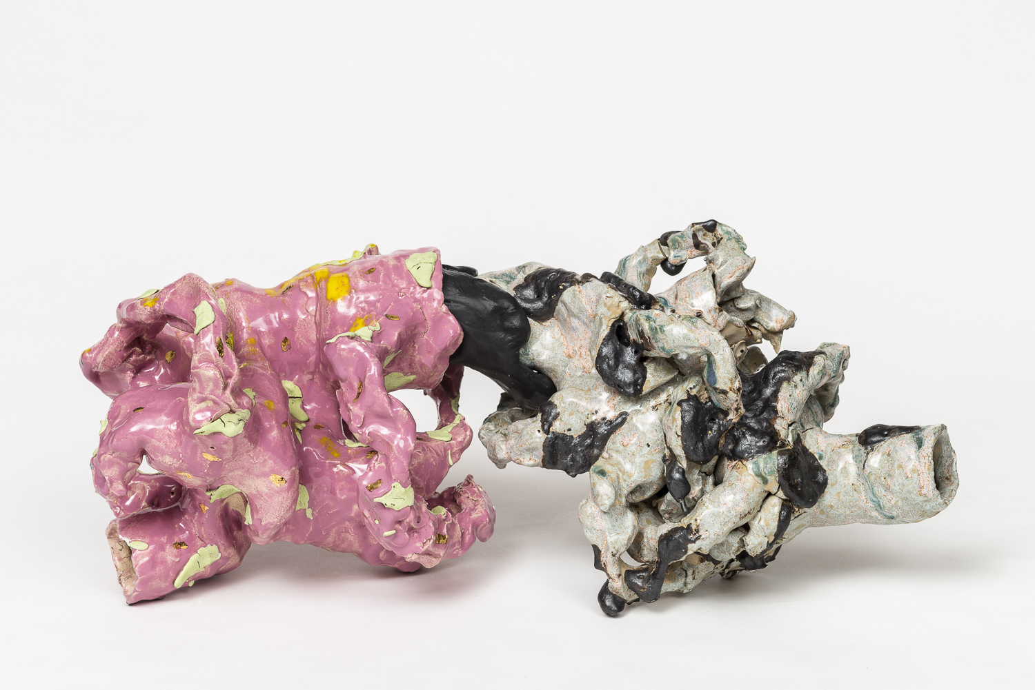 Per Sabino de Nichilo (Molfetta, 1972) è il dentro. L’artista penetra la materia, ne sonda nel profondo le possibilità speculative oltre che formali, approdando all’interiorità, fisica ancor prima che emozionale. Parte dalla terracotta, dal gres industriale, dalla terraglia, materie base a cui aggiunge gomma e altri materiali in un’initerrotta sperimentazione del mezzo e del modo. Dualità dell’essere e del divenire, per dare forma ad Organi d’Asporto, sculture ceramiche che hanno le sembianze di frattaglie umane. Presenze plastiche da cui emergono pulsioni vitali e propensioni organiche, connotate da andamenti lineari plurimi, cavità e aperture.