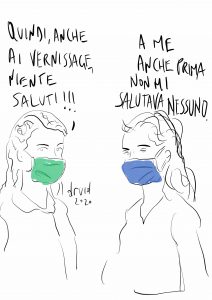 Nell’arte l’improvviso mancare della componente analogica, non solo, come dicevo, confligge con la sua natura materiale e oggettuale, tanto decisiva nella fase produttiva che in quella fruitiva, ma si allea dolorosamente a quella necessarietà dell’analogico verso la quale proviamo già in questi giorni nostalgia. E cioè verso quel nostro essere corpo tra corpi, che venendo privato della possibilità della relazione, dell’incontro, dello scambio fisico interpersonale, è mutilato di quella dimensione esistenziale ed espressiva che è tanto decisiva da aver meritato un proprio spazio di studio nella semiologia con la prossemica. L’arte, e la cultura tutta, è del tutto intrinseca a questa dimensione, ne è a volte il risultato e a volte la causa, giocando però sempre un ruolo decisivo nella determinazione di noi come dell’ambiente analogicodigitale.