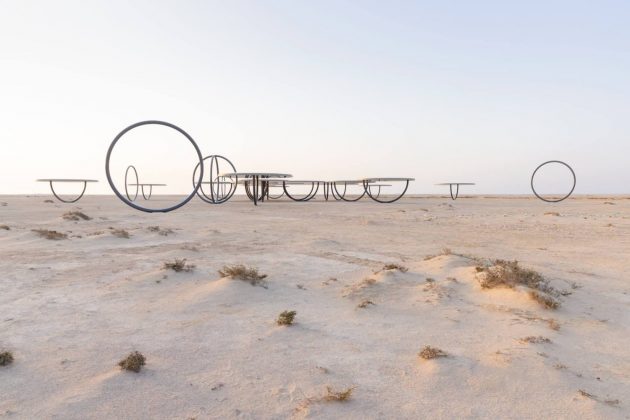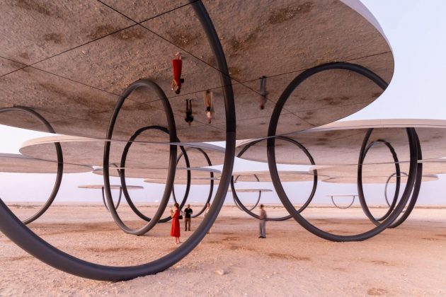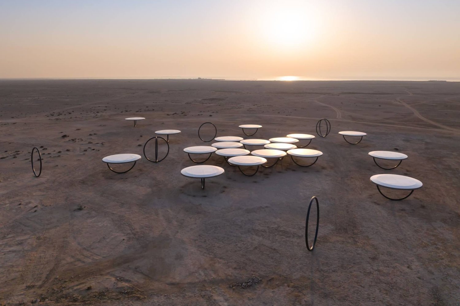“Shadows Travelling on the Sea of the Day, è un invito a risincronizzarsi con il pianeta”, ha spiegato Eliasson . “È una celebrazione di tutto ciò che si trova e si muove attraverso il sito desertico a nord di Doha al momento della tua visita: animali, piante ed esseri umani, storie, tradizioni e artefatti culturali, vento, luce del sole, aria e calore scintillante”.