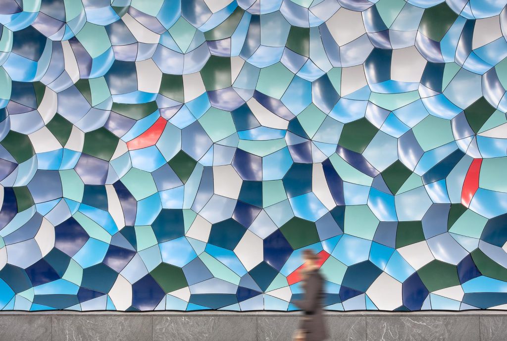 Abile sperimentatore di giochi di luci e forme geometriche, Olafur Eliasson ha fatto riferimento alla tassellatura di Penrose per costruire questa installazione: uno schema di figure geometriche basate sulla sezione aurea fa sì che si ottenga una serie infinita di superfici in modo aperiodico. Tutto ciò si traduce a livello visivo in un risultato che sembra contemporaneamente regolare e casuale. Di notte l’opera è retroilluminata: dalle fessure tra le piastrelle emergono fasci di luce che danno allo spettatore l’impressione che l’onda si muova con lui. “Ciò che vediamo dipende dal nostro punto di vista: capire questo è un passo importante verso la consapevolezza che possiamo cambiare la realtà.”, ha affermato Olafur Eliasson in un’ottica di ripensamento sul rapporto uomo-ambiente, tema centrale della sua ricerca che nel tempo ha saputo declinare in diversi modi dai lavori con e su materiali naturali alla realtà aumentata.