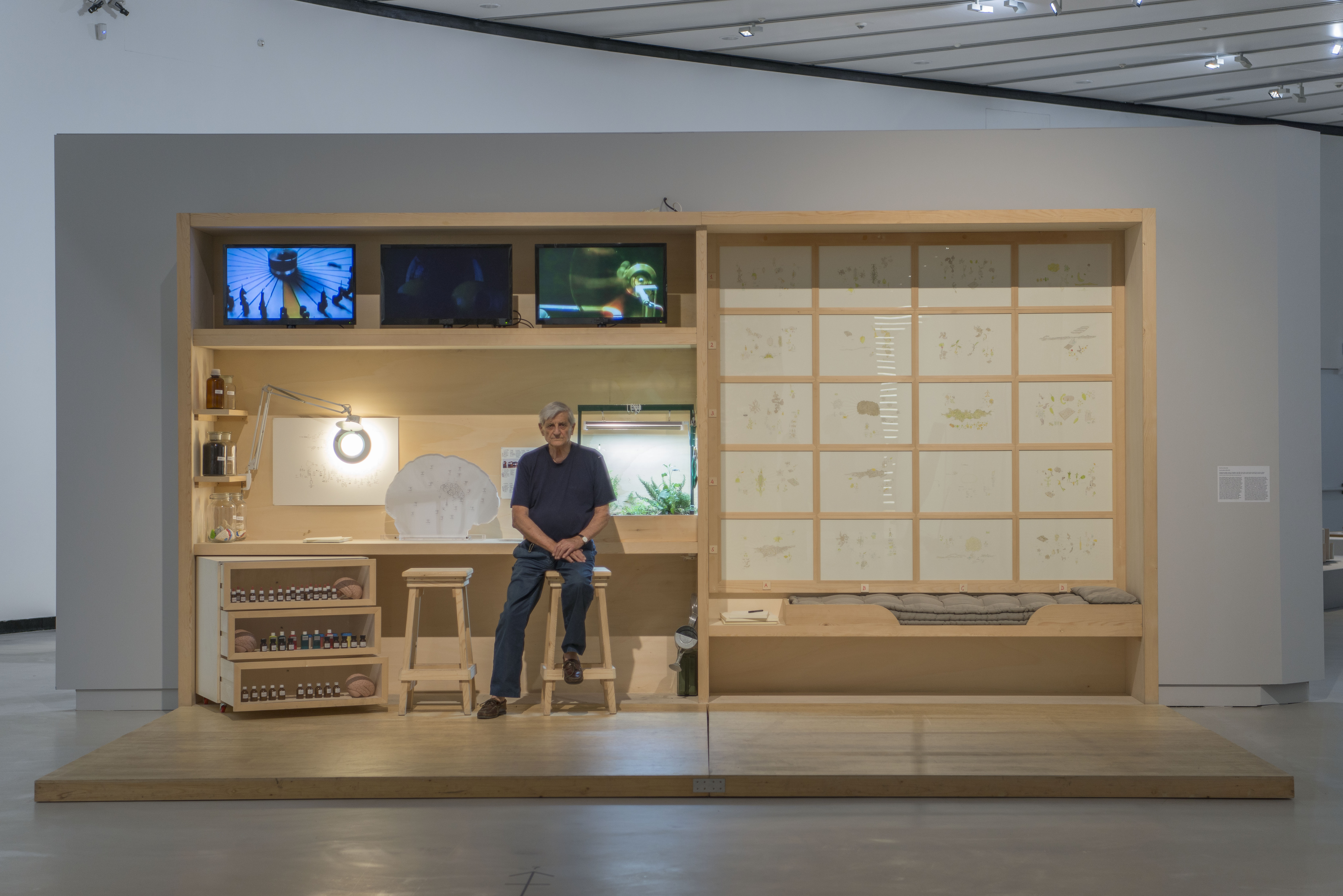 La mostra nella biblioteca del Centre Pompidou riflette l’approccio dinamico, ambiguo e sorprendente del progetto realizzato: il 25 settembre, in concomitanza con l’apertura dell’esposizione, si è tenuta una tavola rotonda, mentre l’artista ha realizzato per la sede parigina una installazione. Questi due aspetti vanno a evidenziare e rendere ancor più manifesto il carattere partecipativo e collettivo di Psicoenciclopedia possibile. permettendo al lavoro di acquisire una dimensione spazio-temporale che coinvolge il pubblico attivamente, invitandolo a portar via alcune pagine del libro e le “istruzioni per immaginare” una propria versione di enciclopedia possibile.