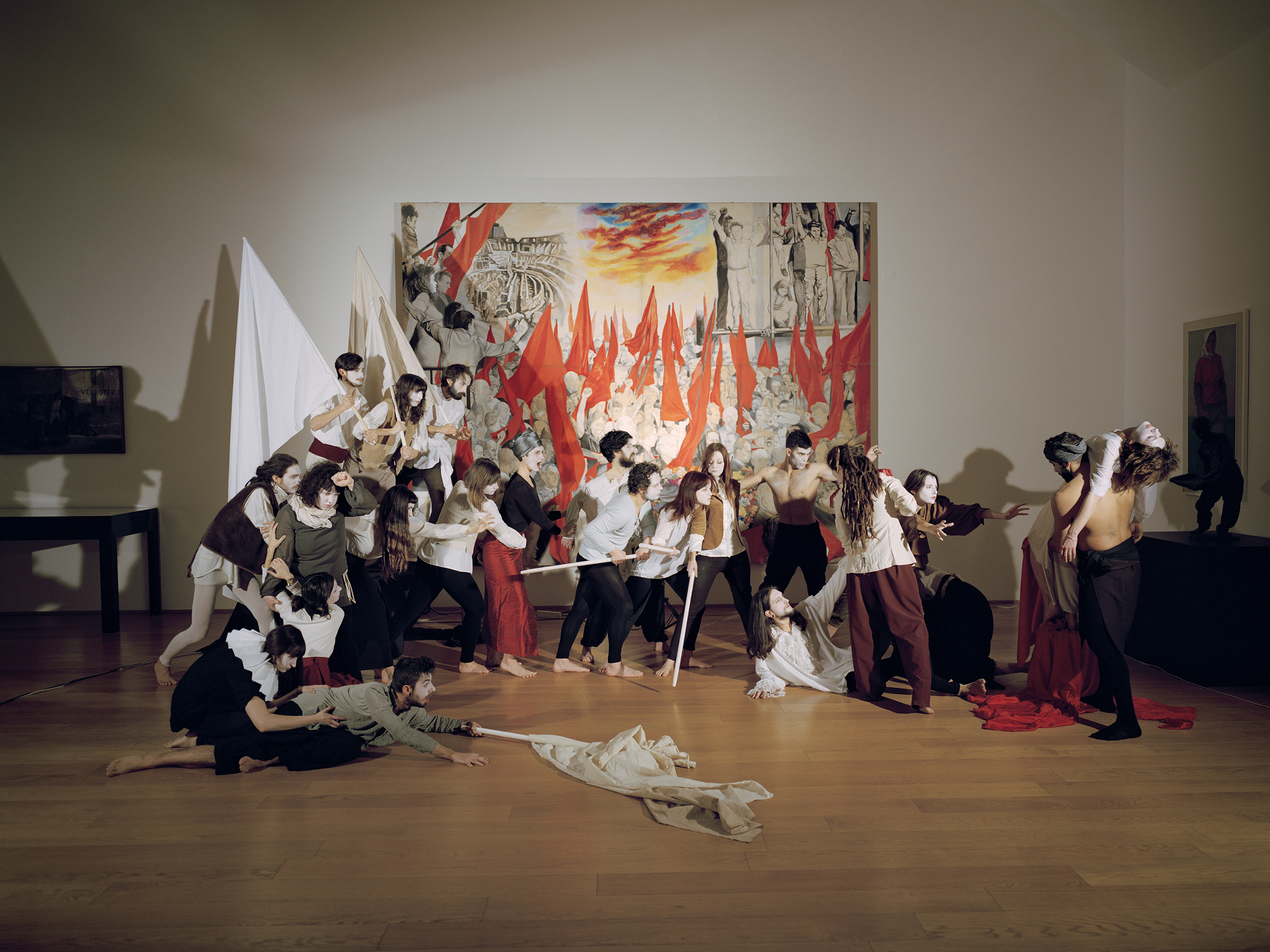 «Presicce interrompe la mobilità della vita per conferire ai corpi la compostezza della pittura e la monumentalità della scultura…» – fotografie dei suoi imponenti tableaux vivants, nonché la traccia viva sull’ex altare centrale della performance che si è tenuta per l’opening, Il miracolo della mandibola, con cui Presicce elaborando l’idea collettiva di ‘atto di fede’ è tornato ad agire in questo spazio dopo alcuni anni. Era il 2012 quando ambientava nelle stessa ex chiesa leccese un omaggio a Carmelo Bene, utilizzandone gli abiti personali e di scena. A oggi, nel frattempo, le fotografie di quell’intervento “Atto unico sulla morte in cinque compianti” sono conservate proprio presso il Fondo-Archivio Carmelo Bene gestito dal Polo Biblio-museale, sorto quest’anno nell’attiguo Convitto Palmieri.