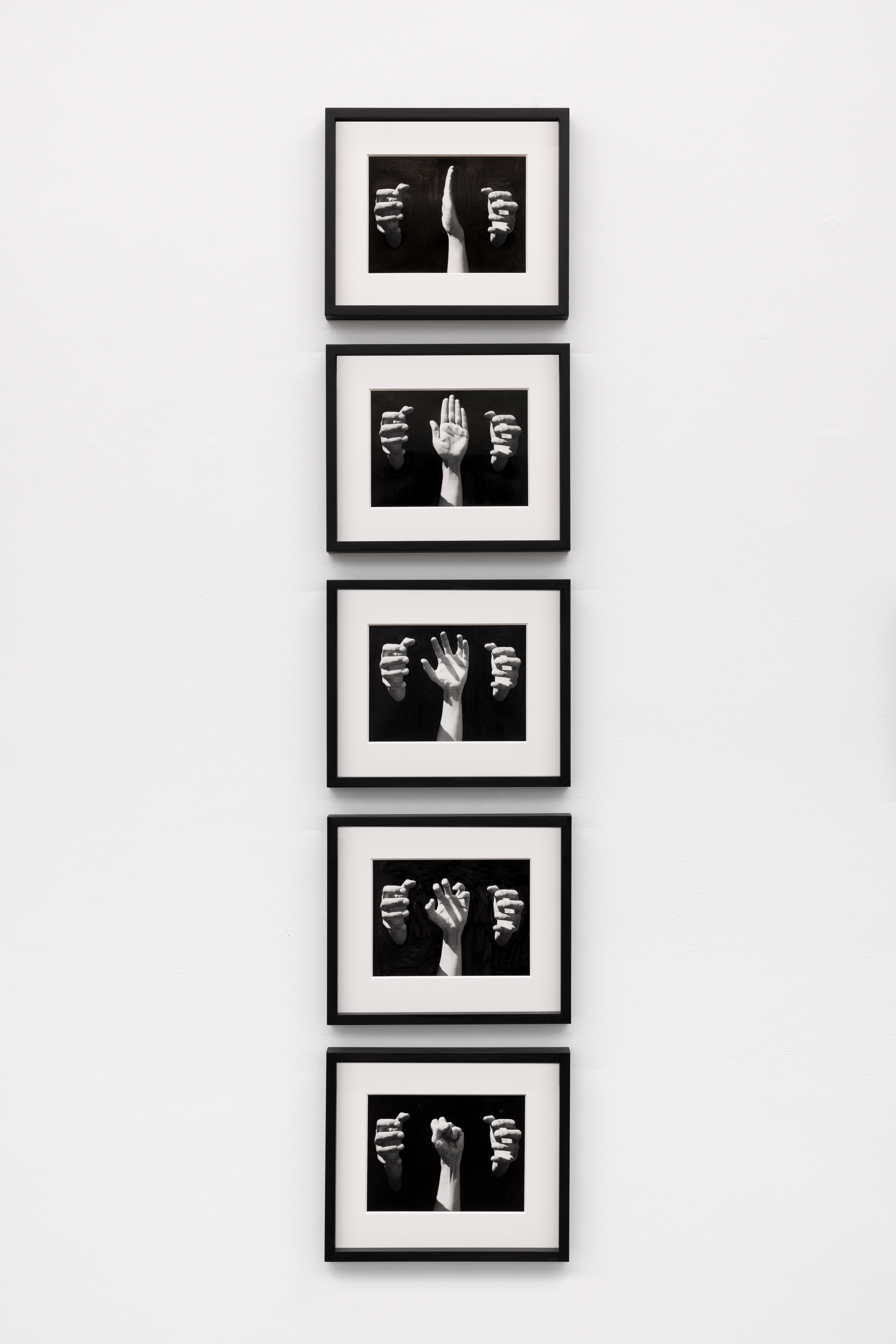 Invece, La Rocca, nella serie delle Craniologie (1973), considera l’origine del linguaggio proveniente dall’interno del corpo: le immagini radiografiche del suo cranio sono sovrapposte a fotografie delle sue mani – una con l’indice teso, l’altra chiusa a pugno – e sovrimpresse alle parole scritte a mano “tu, tu, tu”, proponendo il proprio linguaggio visivo proto-femminista. Come spiega: «La dimensione misteriosa del linguaggio ha così modellato il volto dell’uomo, lo ha corroso, e per questo motivo sovrappongo il gesto della mano in tutta la sua espressività e semplicità comunicativa all’interno del cranio, dove il cervello ha dato vita all’insieme del pensiero e del linguaggio umano». In questa mostra, le ribellioni sono da attraversare in parallelo, anzi, collidono nel considerare il linguaggio come segno, materiale e sistema, lo cooptano per i propri scopi e ne aggirano l’uso nei contesti sociali convenzionali.