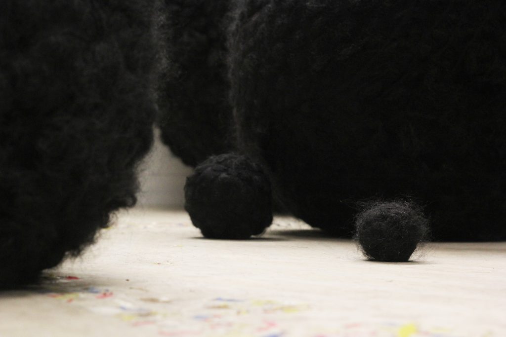 Per la sua prossima mostra alla Fondazione Sensus, in apertura il 16 novembre, Anna Rose ha realizzato 13 sfere dal diverso diametro, da una piccola palla da tennis fino a 180 centimetri di circonferenza, che i visitatori sono invitati a spostare in lungo e in largo per lo spazio espositivo, modificandone la percezione. Un’esperienza tanto ludica quanto straniante, da effettuare con la dovuta cautela, ovviamente. Le sfere, infatti, sono composte da filamenti vagamente tricologici, organici o sintetici non è dato saperlo e la loro consistenza potrebbe svanire al tatto, come la vanità. E il richiamo ai capelli è tutt’altro che casuale e, oltretutto, ritorna spesso nelle opere di Anna Rose, con tutte le implicazioni simboliche e culturali.
