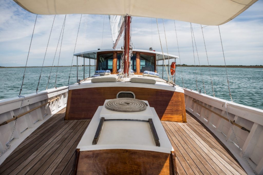 Il suo nome era Emanuela e prima ancora Rapido. Nata nei cantieri di Pola tra il 1942 e il 1943, aveva navigato durante la guerra, portando in salvo centinaia di persone: italiani in fuga dalla Venezia Giulia, dalla Slovenia, dalla Croazia, dalla Dalmazia. Negli anni ’50 viene acquistata dal pittore Giuseppe Zigaina, artista di Pier Paolo Pasolini. Da qui in poi il resto è storia. Lo scafo di diciassette metri divenne luogo di incontri leggendari, come quello tra Maria Callas e Pasolini, che su questa barca esplora Grado, dove girerà Medea.