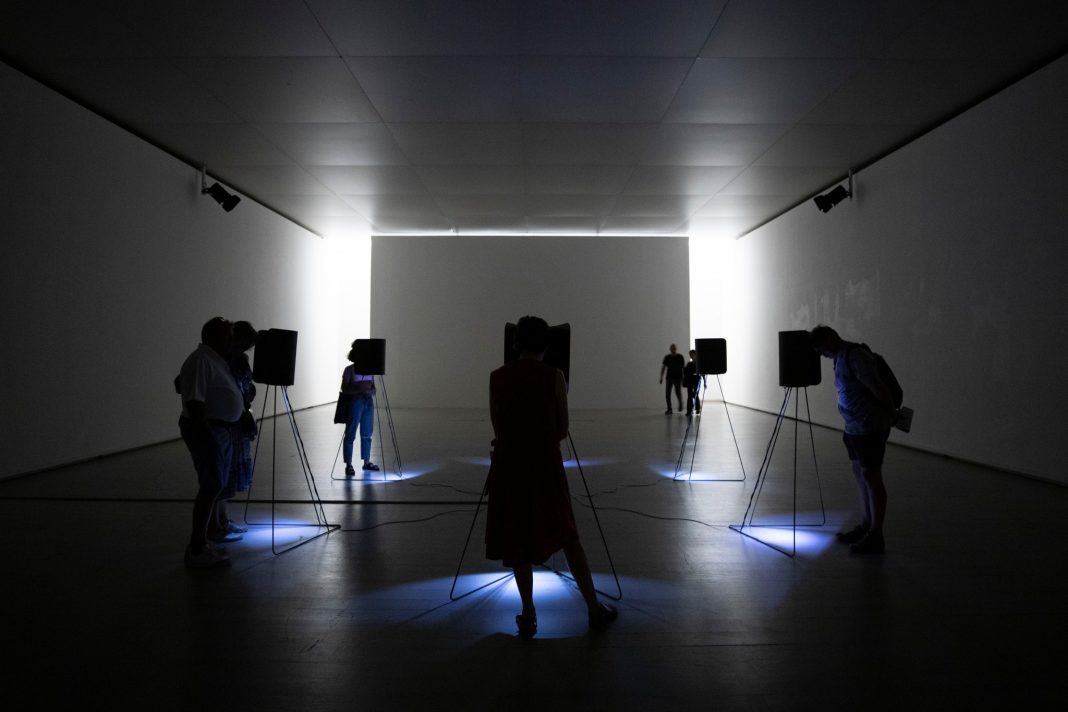 E come plurali sono le voci che narrano, così sono molteplici le forme assunte, di volta in volta, dal progetto. Nella prima fase, i fruitori sono stati invitati a entrare in una struttura gonfiabile – la Dream Capsule – collocata in varie gallerie d’arte e spazi esterni in tutto il mondo, per raccontare e registrare i propri sogni. Nel 2022, questo archivio è diventato una video-installazione e una performance, Dust of Dreams, realizzata da Francesca Dibiase, Ilaria Quaglia e Valerie Tameu, su coreografie di Daniele Ninarello, che hanno “agito” i sogni. Con Dreamscape, invece, Frapiccini ha tentato un avvicinamento, mettendo al centro dell’opera – oppure, sulla circonferenza – la pratica dell’ascolto, realizzando un’installazione sonora immersiva necessita della presenza del pubblico per essere attivata, rivelando la dimensione universale, collettiva e condivisa di quella strana dimensione che definiamo inconscio.