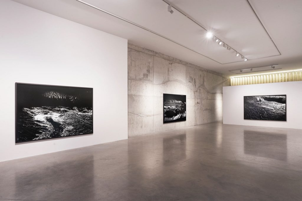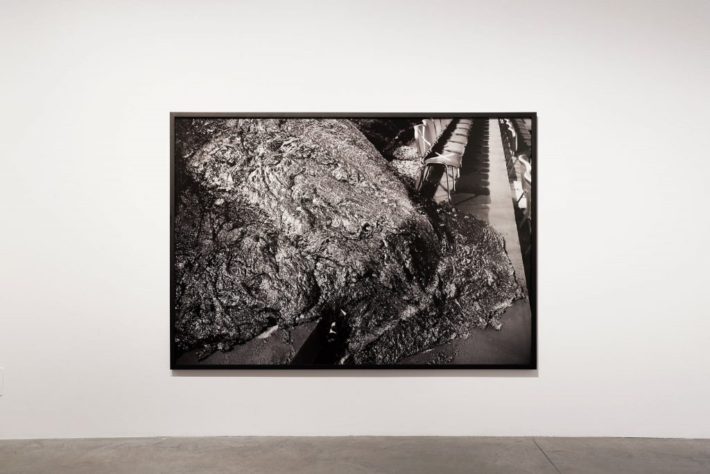 La mostra racconta il colonialismo, il nuovo colonialismo, e lo fa nel modo più duro possibile, ovvero estremizzandolo, rendendolo parodia di sé stesso e sospendendo ogni giudizio morale. Entrando nello spazio, è possibile fin da subito vedere una selezione di opere in bianco e nero dall’estetica alienante e quasi post apocalittica. Los Embarrados ossia Il fango è un progetto composto da una serie di foto e disegni che ritraggono un ambiente fangoso, un pantano contemporaneo. Le foto mostrano la Mud Runway, lo spazio passerella concepito da Sierra per la sfilata di Balenciaga a Parigi nel 2022. Per l’occasione l’artista declina sotto una nuova forma la House in Mud, opera realizzata alla Kestnergesellschaft di Hannover nel 2005, quando il piano terra dell’istituzione tedesca fu ricoperto da 320 metri cubi di fango e torba.
