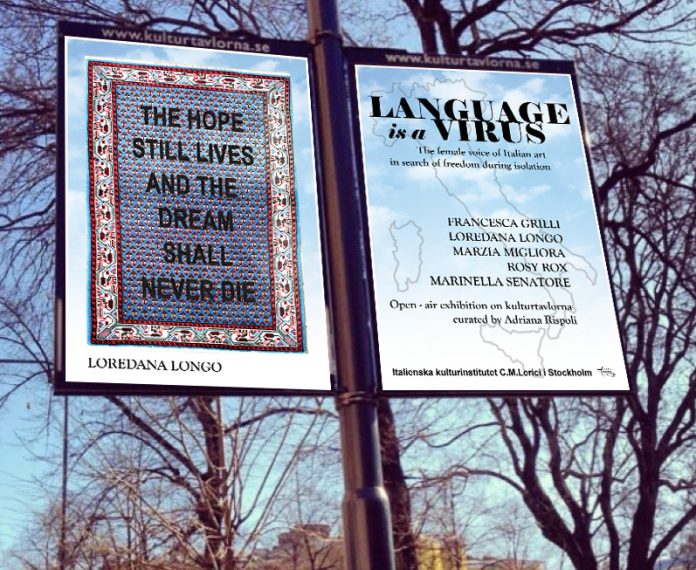 Da oggi, 25 maggio, fino al 14 giugno l’Istituto Italiano di Cultura di Stoccolma con il progetto “Language is a virus”, voluto da Maria Sica, Direttrice dell’Istituoto Italiano di Cultura della capitale svedese e curato da Adriana Rispoli, porta nelle strade di Stoccolma dei manifesti realizzati da Francesca Grilli, Loredana Longo, Marzia Migliora, Rosy Rox e Marinella Senatore.