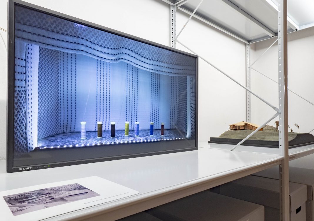 Durante il percorso si può anche vedere il video Linee (2020) costruito con Enrico Serotti, un piccolo teatrino dove le spolette dei fili da cucire roteano fino a rimanere nude, un intervallo nel percorso, giusto per inanellare un ulteriore livello nella mostra, un dialogo con l’iconica Scultura n. 25 (1935) fatta di linee di Fausto Melotti.