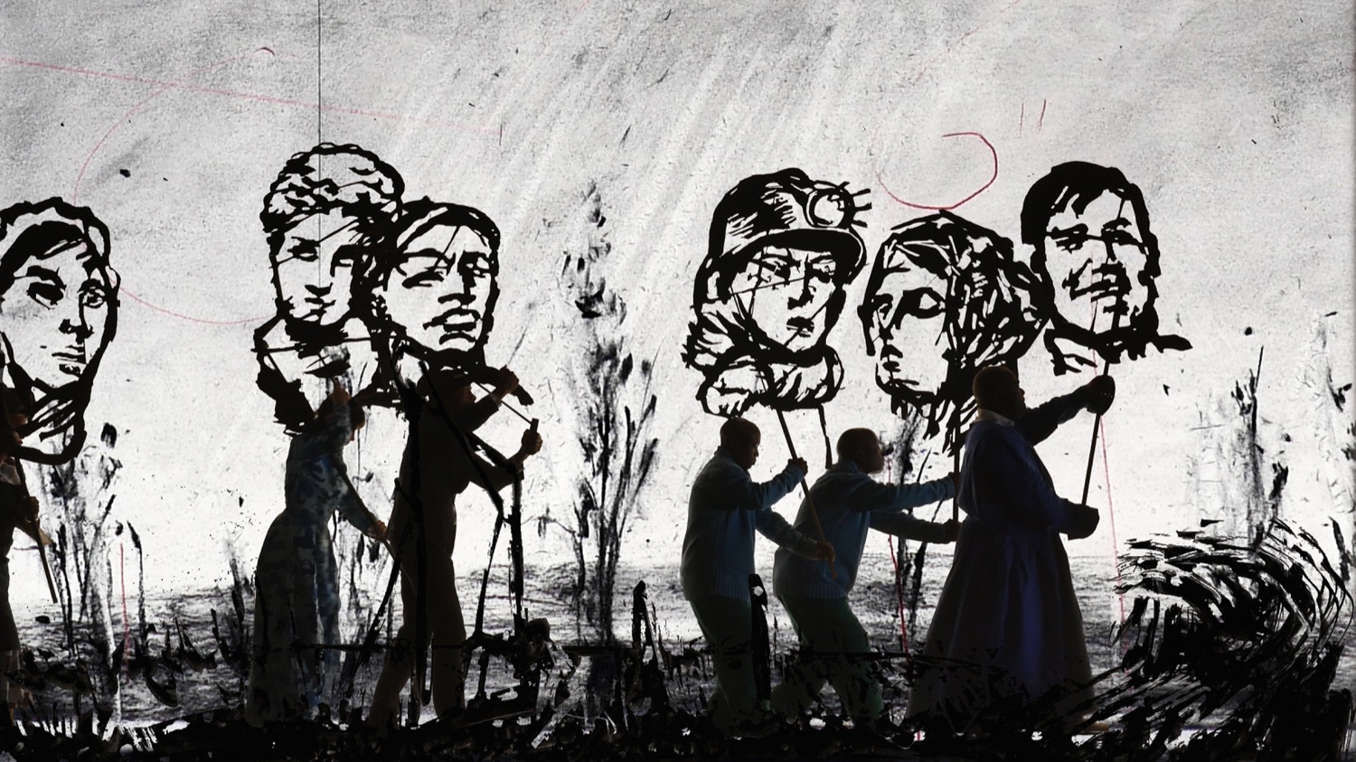 Presentata per la prima volta nel 2015 e presentata in musei e istituzioni culturali in tutto il mondo, More Sweetly Play the Dance è una danza macabra su otto grandi schermi e per decine di metri di proiezione, un rituale beneaugurante e coinvolgente scandito dai disegni da Kentridge. Una carovana che scorre su uno sfondo di volti abbozzati e sagome di scheletri, guidata da una banda di ottoni e composta da una lunga sequenza di degenti zoppicanti e appoggiati a flebo, sacerdoti ornati con fiori funebri, colonne di individui che trascinano sacchi, oggetti e cadaveri. Apocalittico e grottesco ma anche ironico e profondamente riferito alla possibilità di rinascita, in un ciclo di morte e vita che magari non si può comprendere ma che, in ogni caso, non si può interrompere.