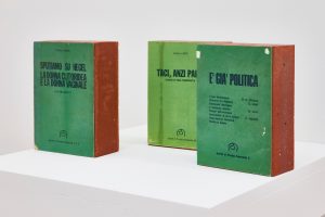 In questa prima sezione più archeologica intitolata “Divenire Ex”, tra gli altri, troviamo anche riferimenti all’anarchico Pinelli (Francesco Arena), al gruppo di liberazione sessuale Fuori (Irene Dionisio), a Nanni Balestrini (Danilo Correale e Claire Fontaine) e al Gruppo ’63 (Luca Vitone) al cinema radicale di Alberto Grifi (Alice Guareschi), al più politico Enzo Mari (Celine Condorelli), al compositore concettuale Giuseppe Chiari (Massimo Bartolini), ai fondatori del Centro per la sperimentazione e la ricerca teatrale di Pontedera (Rä di Martino).