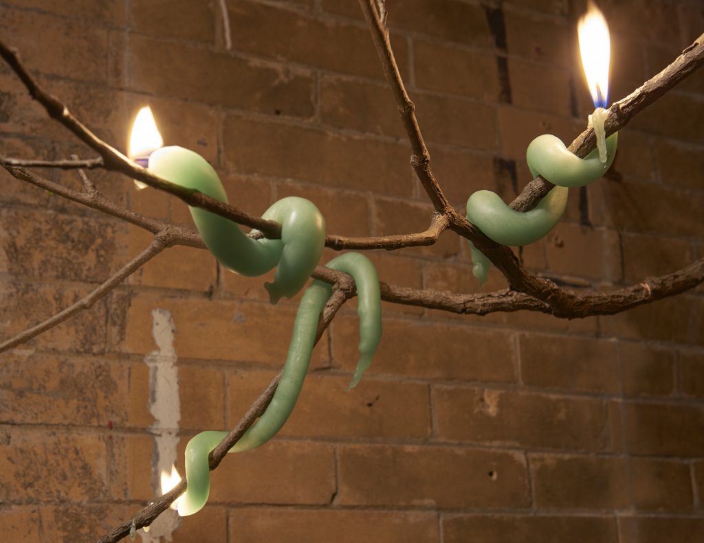 SculptureCenter, New York, 2017.Bronze, wax, cotton wick, bronze wire. Dimensions variable