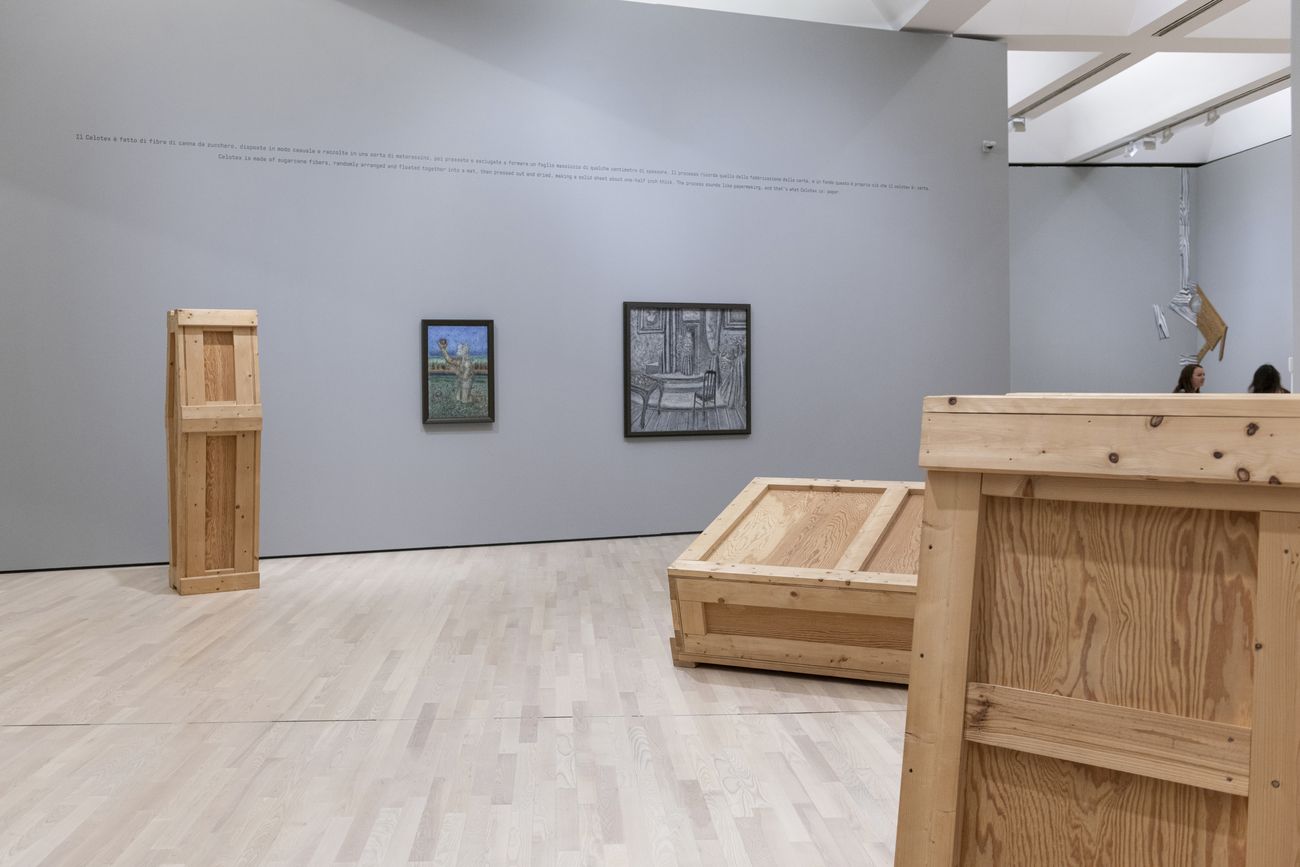 Il percorso espositivo della mostra, studiato come un labirinto aperto, evidenzia con circa 80 opere, dai primi anni Sessanta del Novecento al primo decennio del Duemila, i principali nuclei della ricerca di Artschwager: dalle strutture in legno e formica ai dipinti su celotex, dalle sculture in setole di nylon ai “corner pieces”, senza dimenticare le opere in crine e i blp di piccola dimensione o ambientali ai quali l’artista lavora dal 1968 in poi».