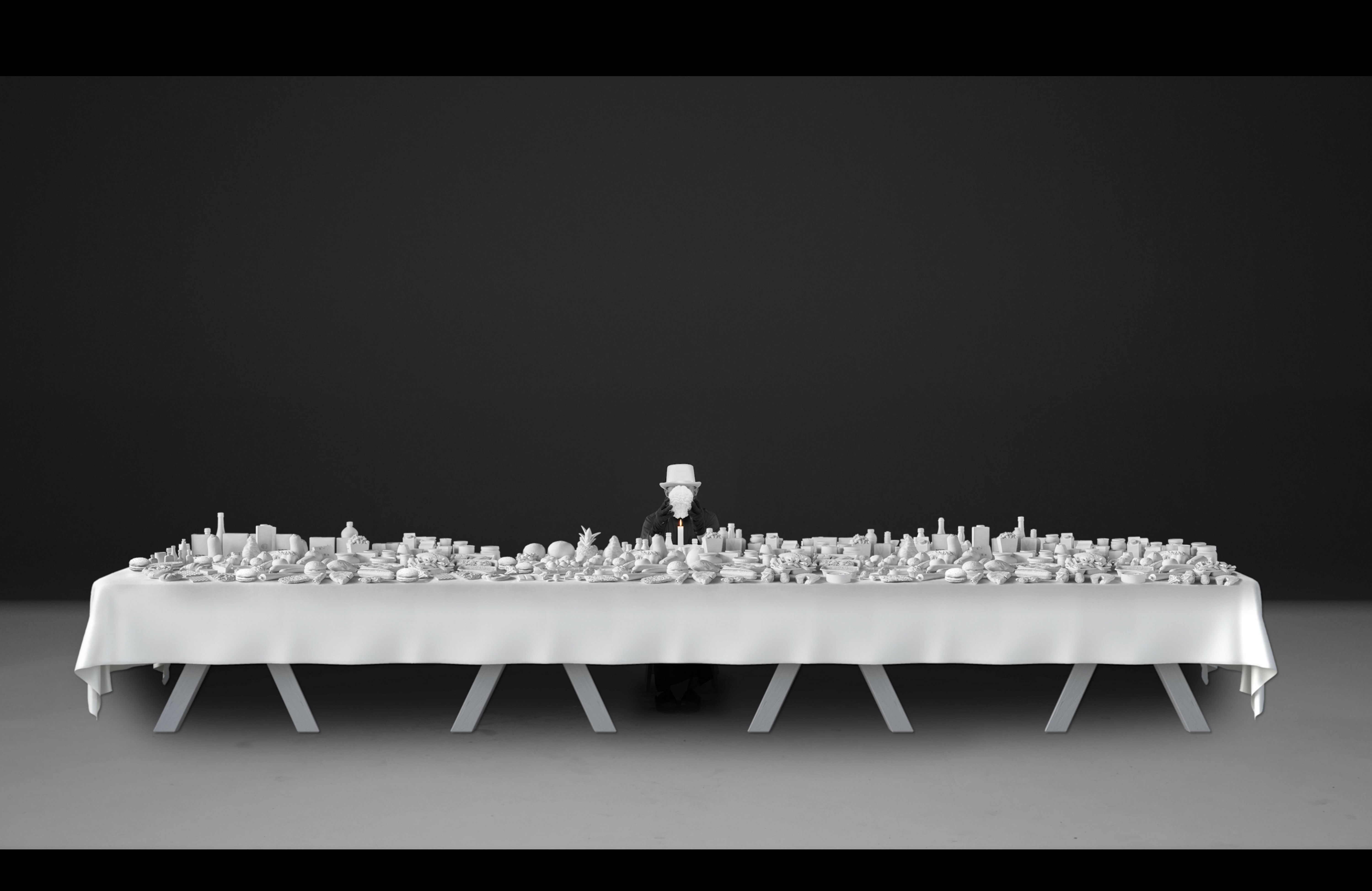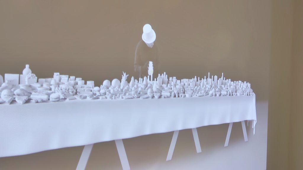 «Nel film, lo spettatore vede un lungo tavolo coperto da centinaia di alimenti, un’immagine di travolgente abbondanza che appare allo stesso tempo familiare ed eccessiva. Al centro si trova una figura solitaria che tiene in mano un cervello che lentamente si scioglie. Per me questa immagine introduce un senso di collasso psicologico e morale all’interno di un paesaggio di abbondanza. La figura è circondata dall’eccesso, e tuttavia ciò a cui assistiamo non è nutrimento o conforto, ma disintegrazione. Il cervello che si scioglie suggerisce che l’abbondanza non produce necessariamente consapevolezza, cura o equilibrio; può anche generare torpore, distacco e una perdita di sensibilità verso ciò che si trova oltre il proprio campo visivo».