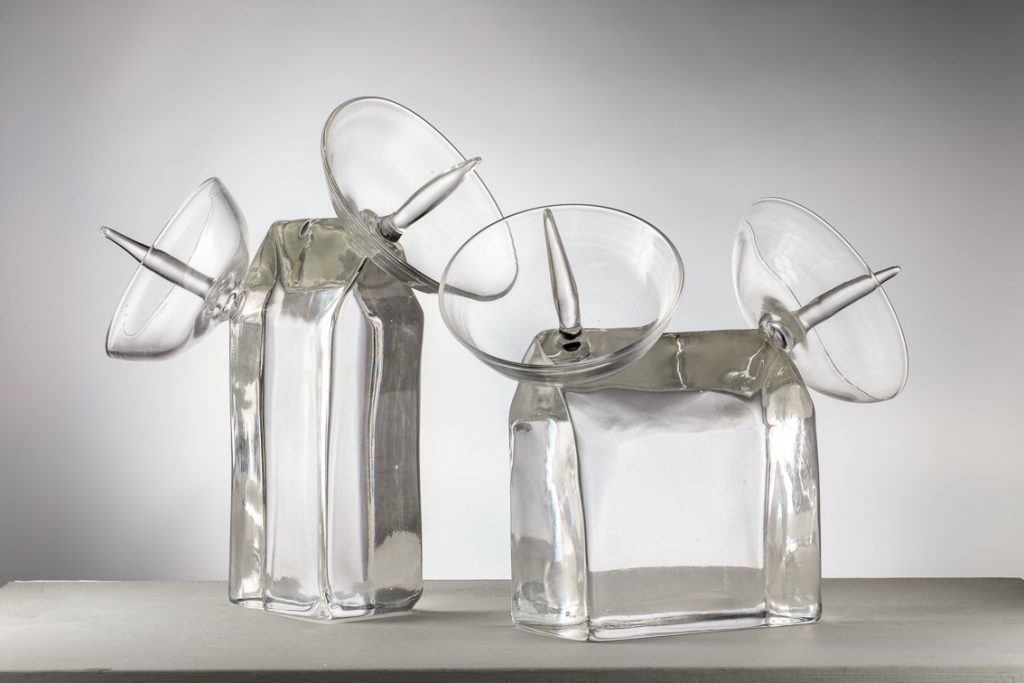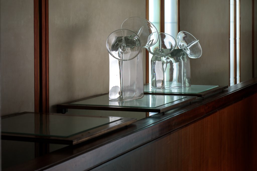 Tutte le sculture esposte sono state create a Murano in vetro soffiato e in vetro massiccio, talvolta attraverso l’antica tecnica della cera persa. L’artista, difatti, si avvicina all’arte del vetro già dagli anni Ottanta, ma è a Murano che perfeziona la sua tecnica, grazie anche alla millenaria esperienza dei maestri e alla solida collaborazione con la fornace di Berengo Studio.