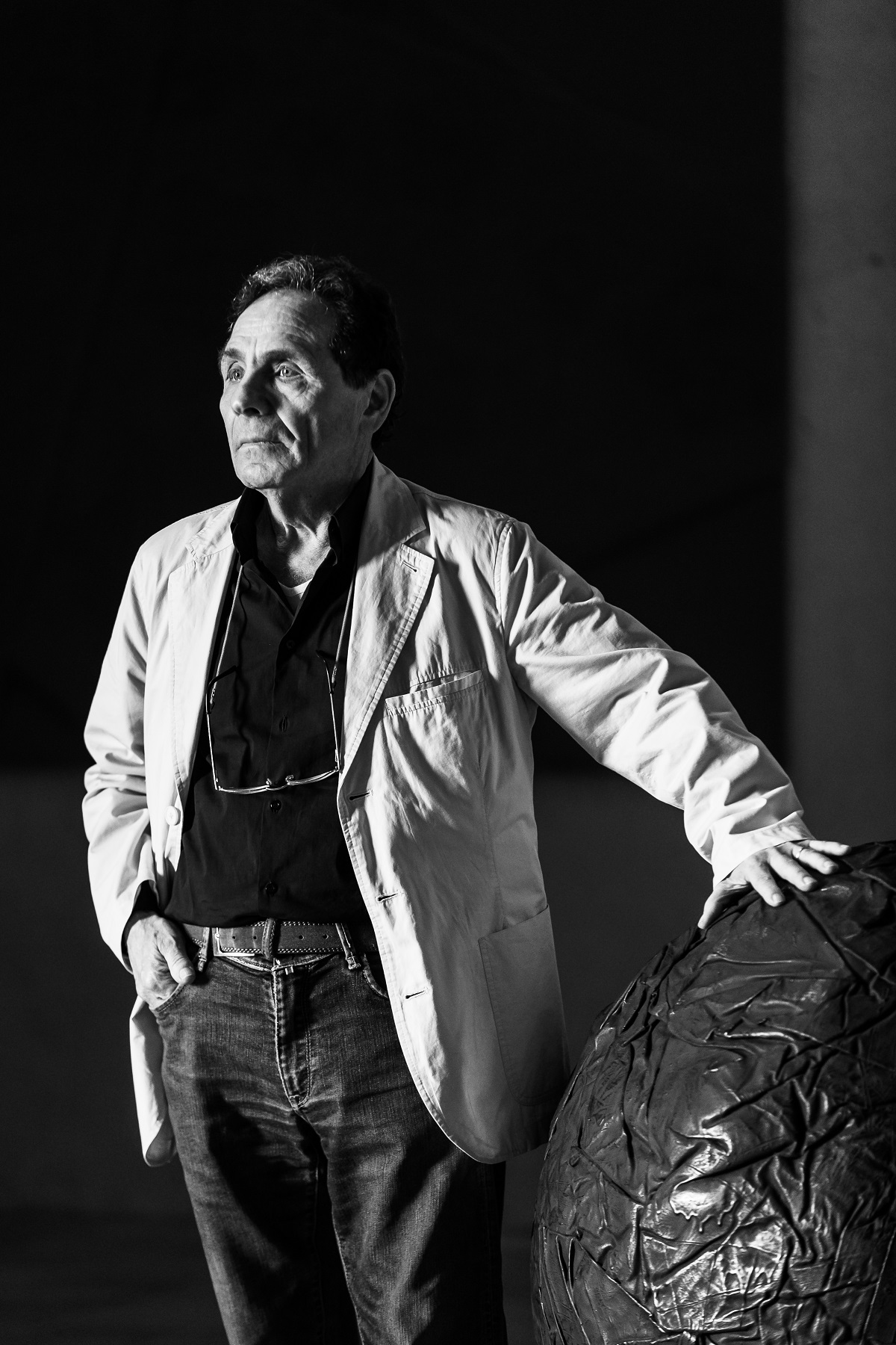 «Un giorno a teatro osservai il fondale di un cielo stellato, da me dipinto, mentre i macchinisti lo stavano piegando per riporlo via. L’emozione che ebbi nel vedere quel cielo che si stava trasformando, di piega in piega, in un buco nero che assorbiva energia fu per me una rivelazione. Da quel momento cambia il mio modo di concepire lo spazio dell’azione del mio essere pittore. Nascono i dipinti piegati come fagotti da viaggio. È come dipingere il mare, il cielo, le atmosfere e portarseli in viaggio per il mondo. L’incontro fondamentale è stato quello con Tommaso Trini. Sono stati il suo intuito e la sua conoscenza a capire la forza del mio lavoro. Grazie Tommaso!».