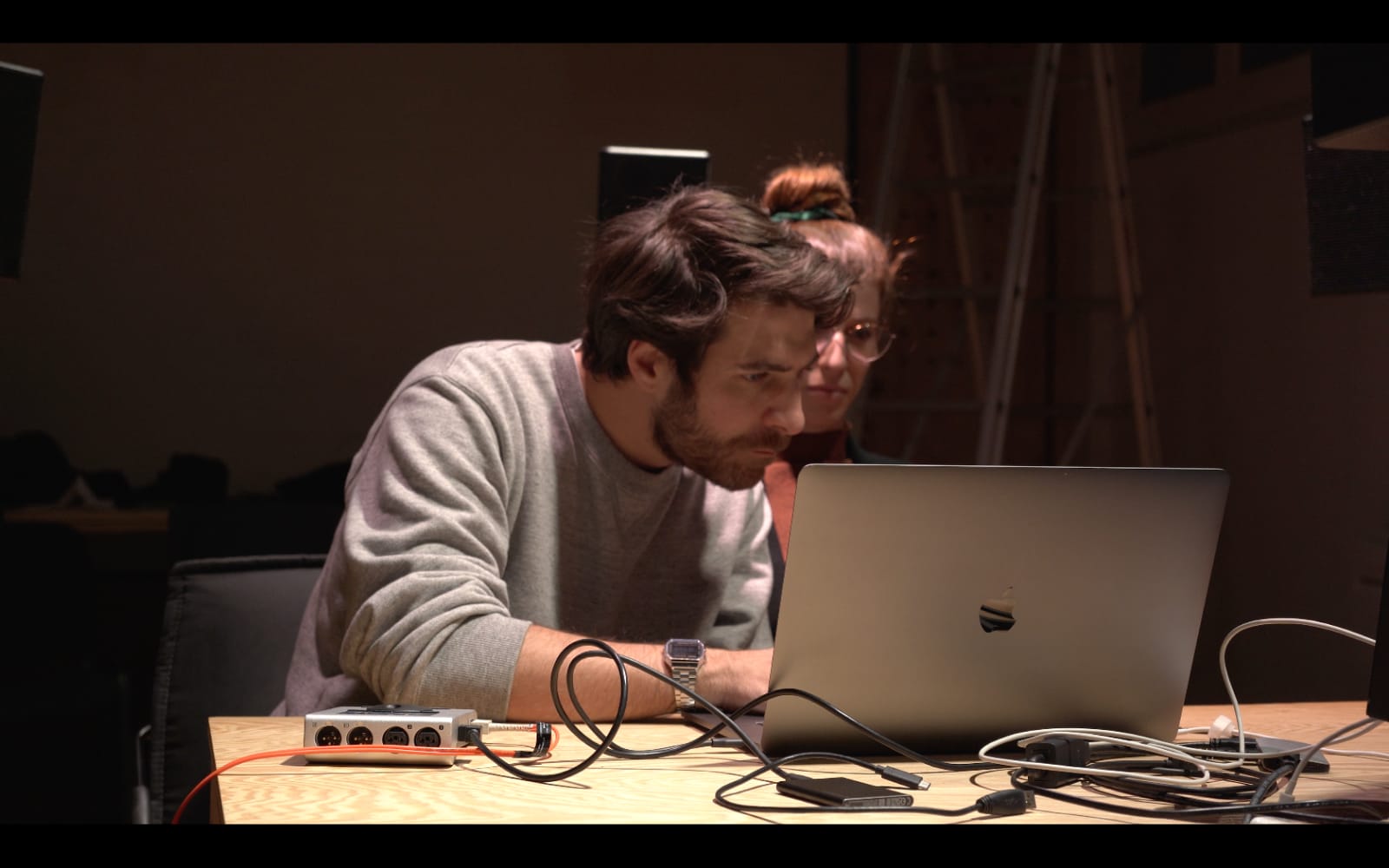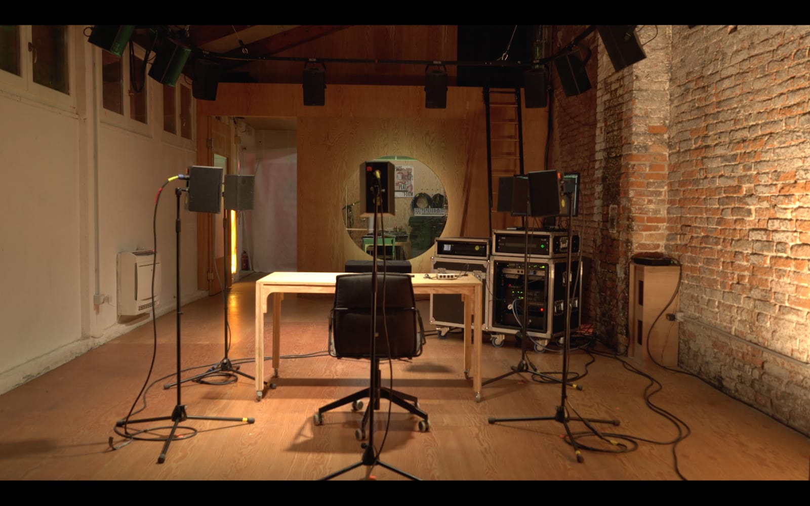 La seconda fase si è svolta a Venezia, negli spazi di Pase Platform, un’installazione per la spazializzazione del suono unica in Europa, la cui peculiare configurazione ha permesso di disporre su 360° una grande quantità di oggetti sonori per esplorare nell’ascolto il risultato di un ampio numero di suoni con caratteristiche completamente diverse diffusi nello stesso spazio e nello stesso tempo. “Ad ogni lancio assistevamo a un magnifico spettacolo del caos – affermano i due compositori – si creavano ambientazioni sonore variegate grazie alla sovrapposizione di frammenti totalmente discordanti o completamente in armonia […] Una naturale sinfonia di suoni frammentati e in costante evoluzione, che non si ripete mai allo stesso modo. Era l’insieme dei suoni che caratterizzano l’affascinante macro sistema di competenze che vive le quinte di ogni spettacolo. Stavamo ascoltando il cuore pulsante del teatro, ma di solito non si ha accesso alle quinte di uno spettacolo, e se avviene può avvenire soltanto a compartimenti stagni, ad esclusione dello spettacolo in sé, architettura di forme e suono per eccellenza. Ma qui è come se potessimo sentire e ascoltare la naturale sinfonia di tutto questo in un unico spazio-tempo”.