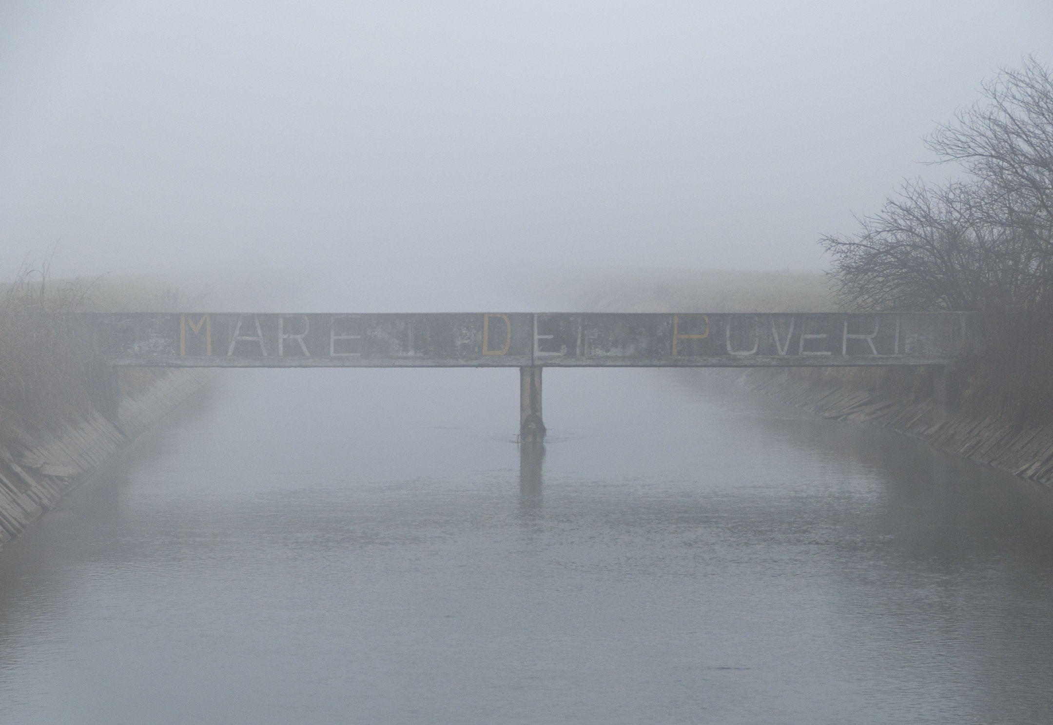 Lo stesso vale per Ettore Favini che partendo da una scritta anonima, “MARE DEI POVERI”, in una fotografia che sembra sospesa nel tempo dà forma — seppur nascondendola — alla socialità che, a volte, può irrimediabilmente trasformarsi in perdita e dolore. Perché ad essere fotografato è un tratto delle acque del Canale Vacchelli a Crema dove d’estate molta gente fa il bagno, nonostante un’ordinanza del 2017 del Sindaco che vieta espressamente la balneazione, e dove, a causa delle correnti, molti hanno perso la vita. Oppure un suo gesto semplice, come buttare un sassolino nell’acqua a creare un cerchio, rompe il silenzio e la totale inerzia e impotenza di un forzato lockdown durante il quale però la natura sembra tirare un sospiro di sollievo.