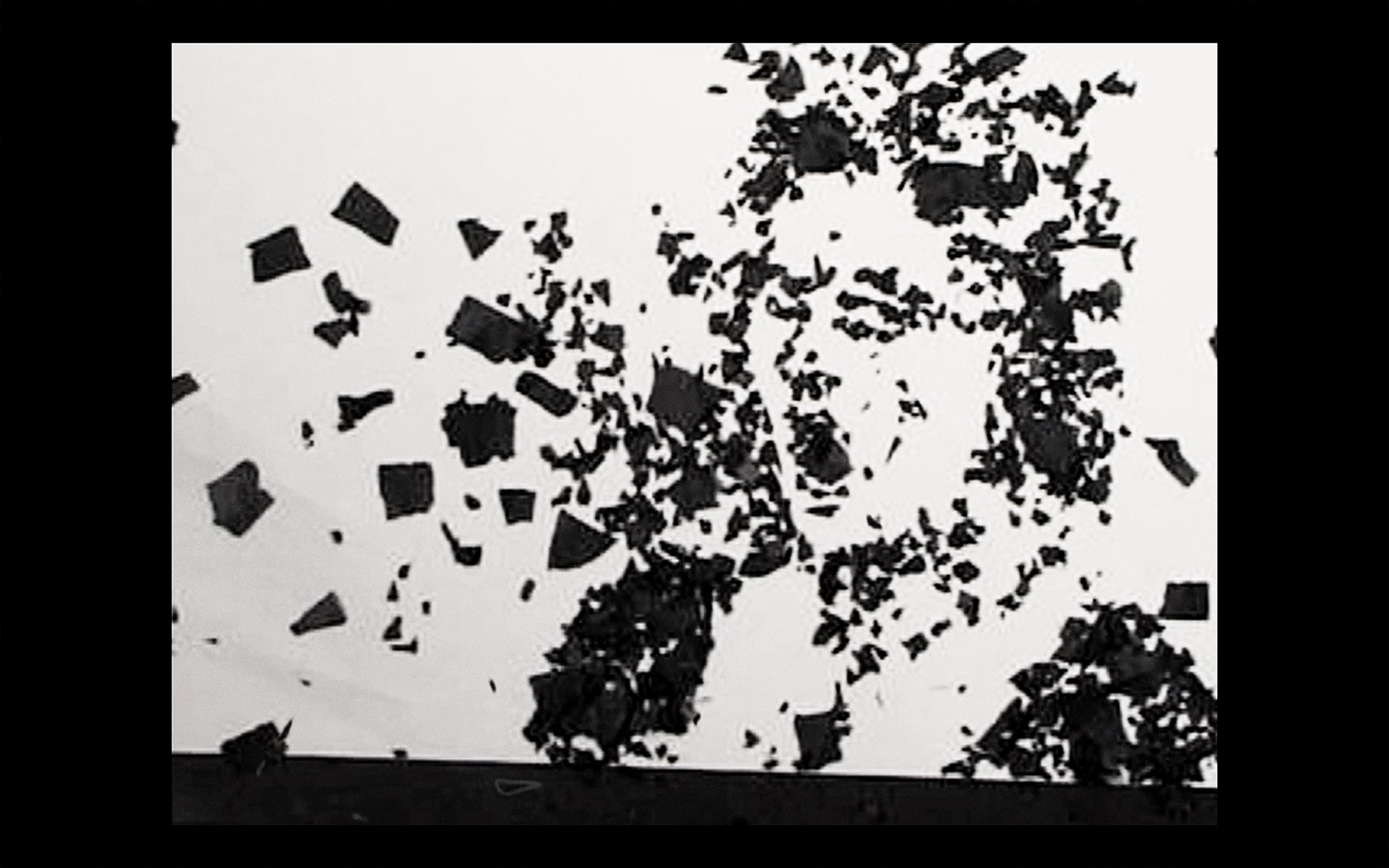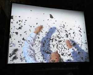 La seconda opera presenta è Breath (2008), un video muto proiettato in una navata laterale. La videocamera ritrae l’artista scomporre e ricomporre alcune immagini di carta velina nera. I pezzetti di carta volteggiano e, sfidando le leggi della fisica, creano immagini ben precise e coerenti.