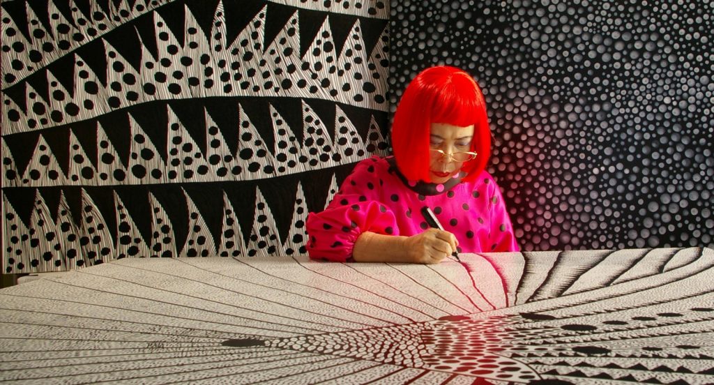 Quando Kusama arrivò a New York per la prima volta, nel 1958, non navigava certo in acque facili. Non aveva molti agganci, solo una grande ambizione e un portfolio di circa 2mila opere. Conosceva però Georgia O’Keeffe e Kenneth Callahan e, grazie a loro, riuscì a organizzare la sua prima mostra a Seattle. La strada era segnata, negli anni ’60 e ’70 Kusama diventò una delle figure più affascinanti nel variegato panorama artistico di New York, grazie ai suoi happening e alle sue performance, durante le quali dipingeva i corpi con i pois che poi sarebbero diventati leggendari.