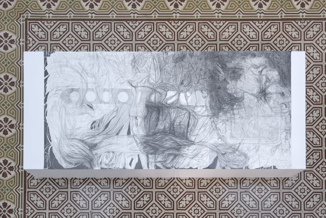 “Fuoco, Innesco: cacciata dall’Eden” è quasi una premessa o forse più una promessa, quella di una mostra che sfida il tempo, che si prende gioco del mistero ma che, in fondo, sembra celare un messaggio di verità nel profondo. I dettagli prima di tutto, viene da pensare, guardando i motivi labirintici accuratamente tracciati dell’artista, che nelle opere in mostra sembra dare libero sfogo a una personale narrazione al confine tra passato, presente e futuro.
