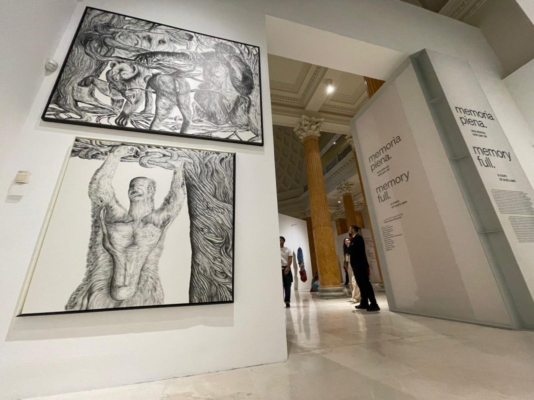 In Il dono (la notte) (2025) si assiste a una ulteriore messa in forma del patto sociale. La figura materna offre il proprio “frutto” alle iene e invita al silenzio, mentre una figura mostruosa indefinita osserva la scena con un’inaspettata compassione. L’immagine, sospesa tra sacrificio e mutismo, sembra evocare il rovesciamento del mito originario della cura: la nascita come atto di consegna alla violenza, la maternità come rituale di potere. In filigrana emerge il culto della morte come fondamento simbolico dei grandi totalitarismi.