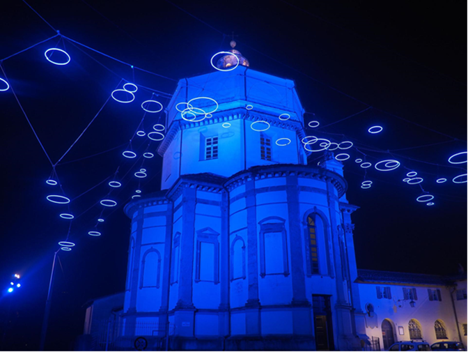 L’opera Piccoli Spiriti Blu, restaurata nel 2022 grazie al contributo della Consulta per la Valorizzazione dei Beni Artistici e Culturali di Torino, è considerata una delle installazioni più amate e iconiche della manifestazione. Dal Monte dei Cappuccini, con le sue luci delicate che sembrano danzare nell’aria come presenze eteree, quest’opera domina il paesaggio torinese, offrendo una visione incantevole che mescola il reale con il trascendente. Un simbolo luminoso della città, capace di suscitare meraviglia e contemplazione.