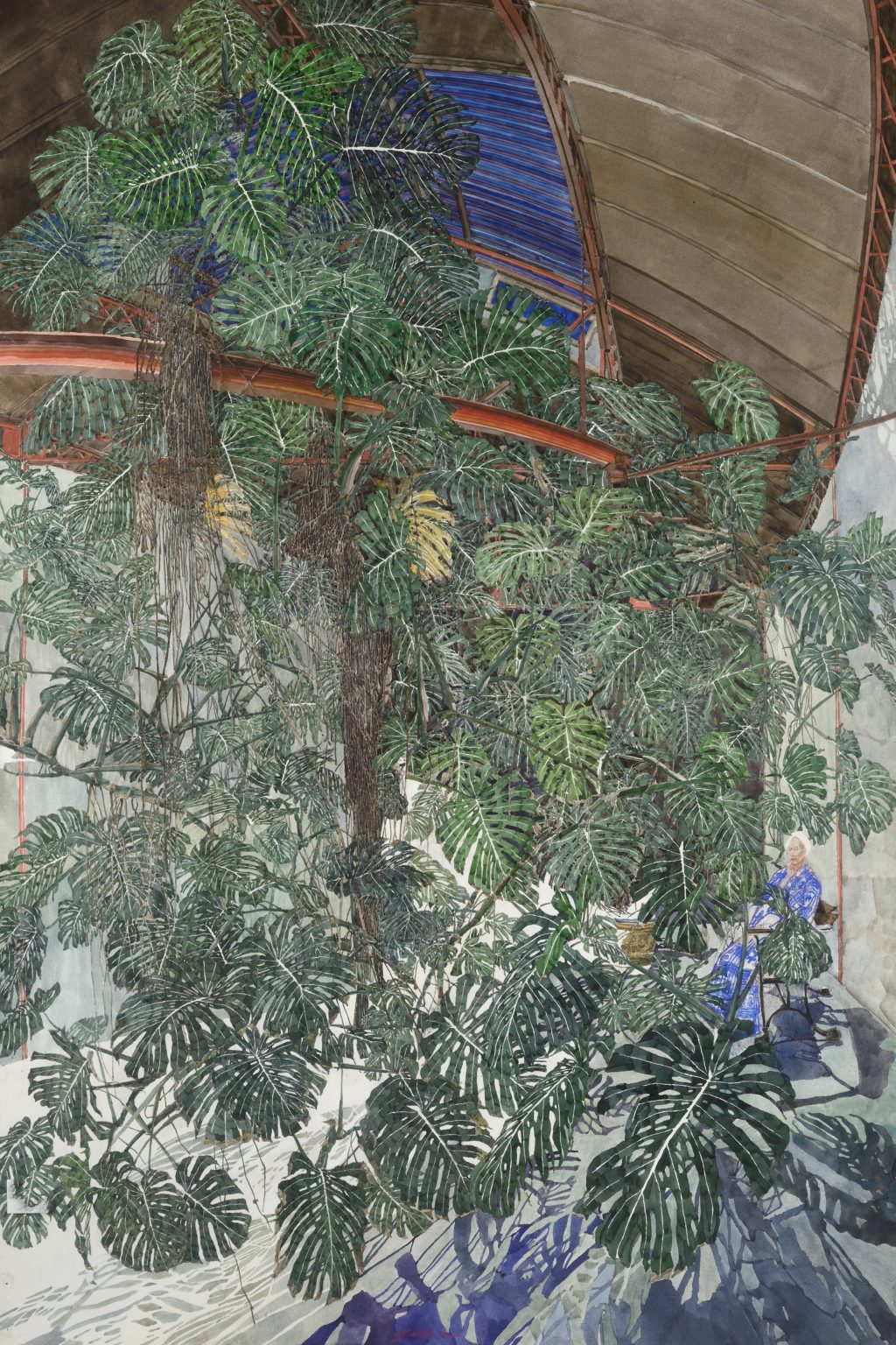 Quando scopre, nello studio parigino del pittore cinese ZaoWou-Ki, il philodendron monstera, viene catturato da una fascinazione che finisce per impedirgli di lavorare. Finche quest’imponenza diventa la sua nuova ossessione con la quale riempie grandi formati traboccanti di quel fogliame che invade gli spazi interni di serre smisurate.
