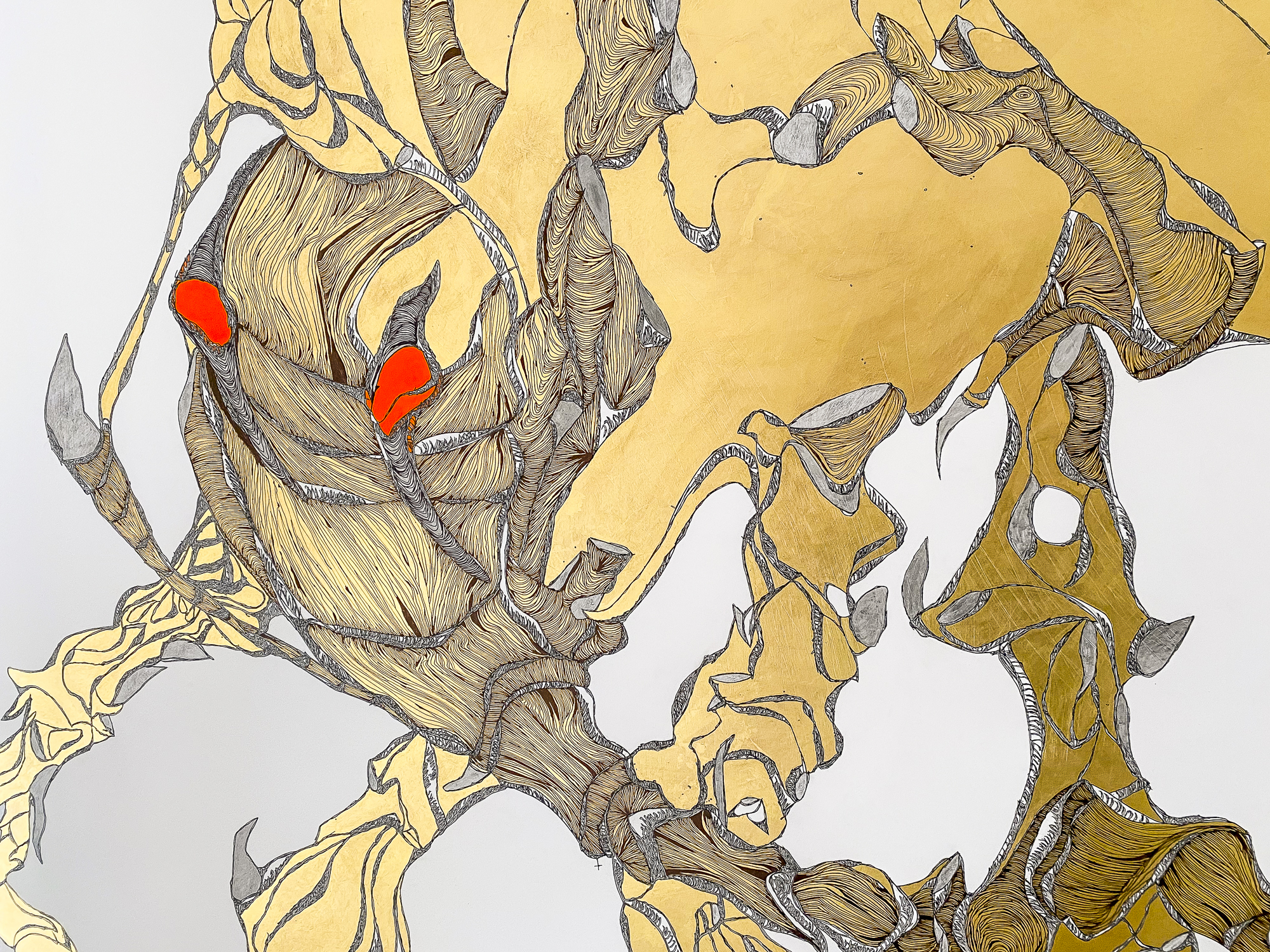 gold leaf, pencil, black marker and acrylic on 8 plaster panels.