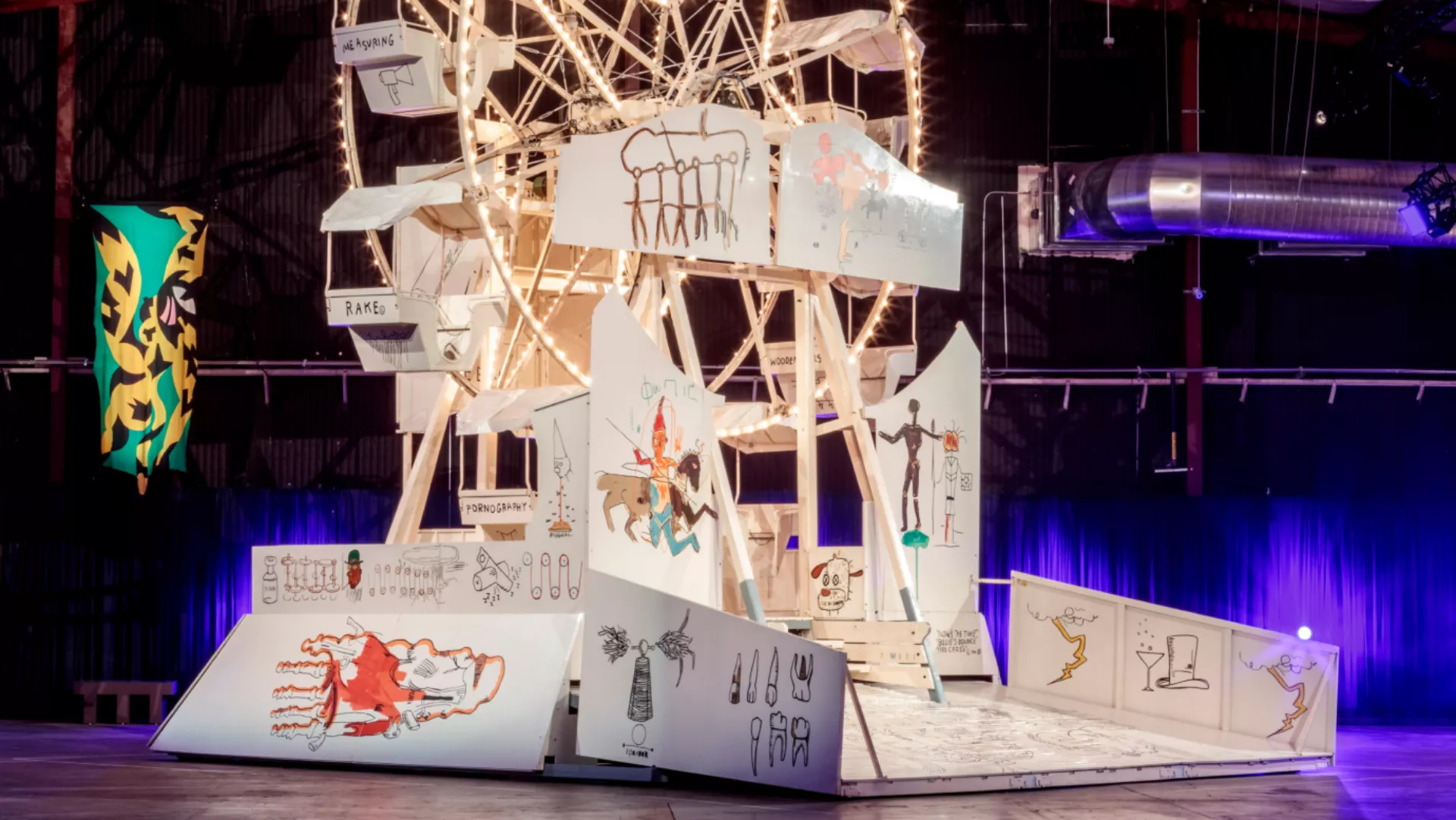 Dopo anni di abbandono (qui potete leggere tutta la storia), tra il 2019 e il 2020 il rapper e produttore Drake riaccese la luce, acquistando le opere, che erano rimaste accatastate per 35 anni in un deposito in Texas, dalla Birch Foundation che, a sua volta, le aveva comprate nel 1990 per 6 milioni di dollari. Non si sa quanto Drake abbia pagato per Luna Luna ma, a quanto pare, l’investimento totale, erogato attraverso la società di intrattenimento DreamCrew, avrebbe superato i 100 milioni di dollari. I lavori di restauro delle giostre d’arte sono durati circa un anno, con la supervisione di un team curatoriale composto da personale della Tate Modern e dello Shed, sotto la guida della consulente e storica dell’arte Helen Molesworth.