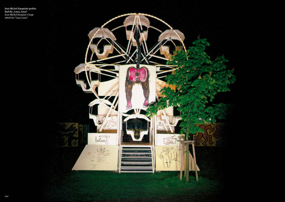 Una ruota panoramica disegnata da Jean-Michel Basquiat, una casa degli specchi ancora più surreale del solito, realizzata da Salvador Dalì, un carosello con le sagome radianti di Keith Haring al posto dei cavallini. Non è un sogno, anzi lo era, così come possono esserlo dei Luna Park. Nell’estate del 1987, ad Amburgo, in Germania, Luna Luna è esistito veramente, un museo a cielo aperto ante litteram, sotto forma di parco divertimenti a tema arte contemporanea. Curato dall’artista austriaco André Heller, tra gli autori delle attrazioni – rigorosamente vere, da fruire in prima persona – personalità del calibro di Roy Lichtenstein, David Hockney, Kenny Scharf, Roland Toper, Jean Tiguely, Sonja Delaunay, Philip Glass e Rebecca Horn oltre ai già citati Basquiat, Dalì e Haring. Solo che, proprio come un sogno, è durato poco, giusto il tempo di lasciare una suggestione di gioia fugace e residui malinconici.