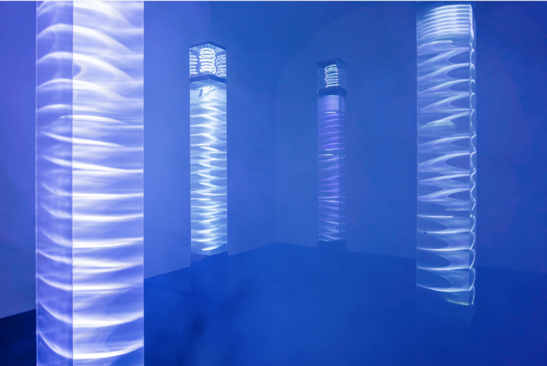 Laura Grisi è riuscita, nel corso degli anni, a ricreare ambienti in grado di ricercare intangibilità e immaterialità senza rompere con le opere del passato. Solo sviluppandone le idee. Nebbia, vento e acqua – insieme ad altri fenomeni naturali – sono le atmosfere che vengono ricreate dall’artista.