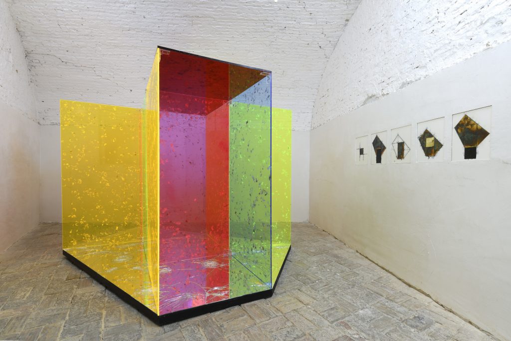 L’attenzione incessante per lo spazio, tanto da portare al conseguimento nel 2023 della Laurea Honoris Causa in Progettazione Architettonica dall’Università degli Studi di Roma Tre, un interesse che l’artista definisce “politico”. In particolare la ricerca, incentrata sulla diade spazio-luce, qui si traduce nella creazione di un vero e proprio ambiente di luce attraverso l’utilizzo del plexiglass realizzato appositamente da una fabbrica marchigiana. A generarsi è uno spazio solido ma permeabile, attraversabile dallo sguardo nelle trasparenze che non nega la vista, bensì la sollecita. Mai uguale a sé stesso nelle imprevedibili velature cromatiche delle pareti in plexiglass, delicatamente ora accoglie ora rifiuta il visitatore che vi si accosta, attraverso un moto oscillatorio simile ad un respiro o una corrente d’aria. Uno spazio inafferrabile.