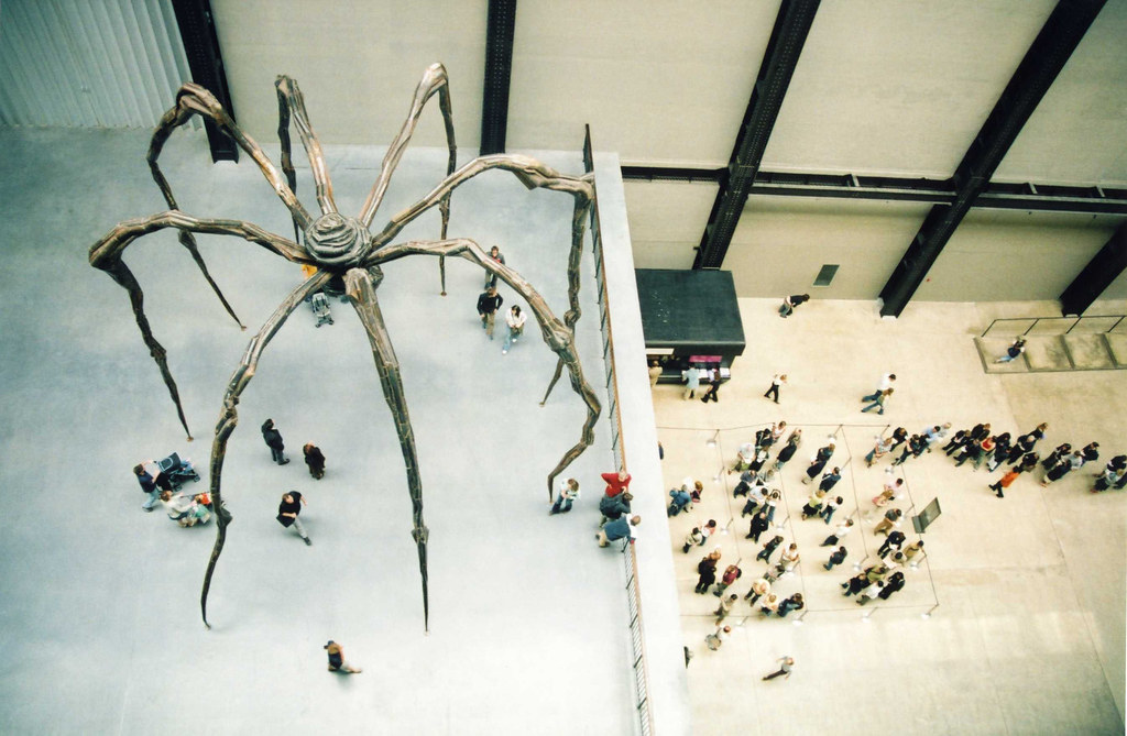 La mitica artista francese realizzò l’opera monumentale, la più grande della serie ispirata agli aracnidi, con i suoi più di nove metri di altezza e 10 di larghezza, nel 1999, nell’ambito di quella che sarebbe stata la prima di una lunga serie di commissioni per gli spazi della Turbine Hall. All’epoca lo sponsor era Unilever, poi è stata la volta di Hyundai ma i progetti realizzati per il grande open space di 155 metri della Tate Modern sono sempre stati accomunati da una ambizione coerente: incidere nell’arte contemporanea. È stato il caso, tra gli altri, di Kara Walker, che presentò una fontana di 13 metri perfettamente funzionante, e di Doris Salcedo, che aprì la sua crepa di 167 metri nel pavimento, mentre di Olafur Eliasson è rimasto memorabile il misterioso sole post apocalittico di The weather project.