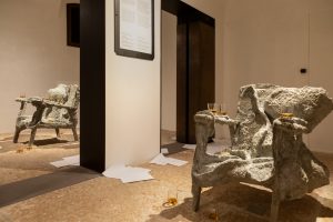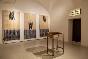 L’itinerario espositivo prosegue nelle Gallerie delle Prigioni (le ex carceri asburgiche, aperte nel 2018, dopo il restauro dell’architetto Tobia Scarpa) con “Atlante Temporaneo. Cartografie del sé nell’arte di oggi”, curata da Alfredo Cramerotti. Qui, i lavori di quattordici artisti, emergenti e affermati, di diverse nazionalità e generazioni, si concentrano su tematiche attuali e sulla ricerca interiore, per una mappatura alternativa, intima, tra realtà e rappresentazione. Per esempio, Enam Gbewonyo (1980, Londra), che indaga l’identità femminile nera, attraverso l’uso di performance e tessuti, o Kiki Smith (1954, Norimberga), che descrive una “cosmografia contemporanea. Oppure l’installazione site-specific di James Lewis: un’ambientazione domestica, in cui la presenza umana è evocata da bicchieri pieni di whiskey. Nell’insieme, un affresco di esperienze personali per una geografia dell’anima.