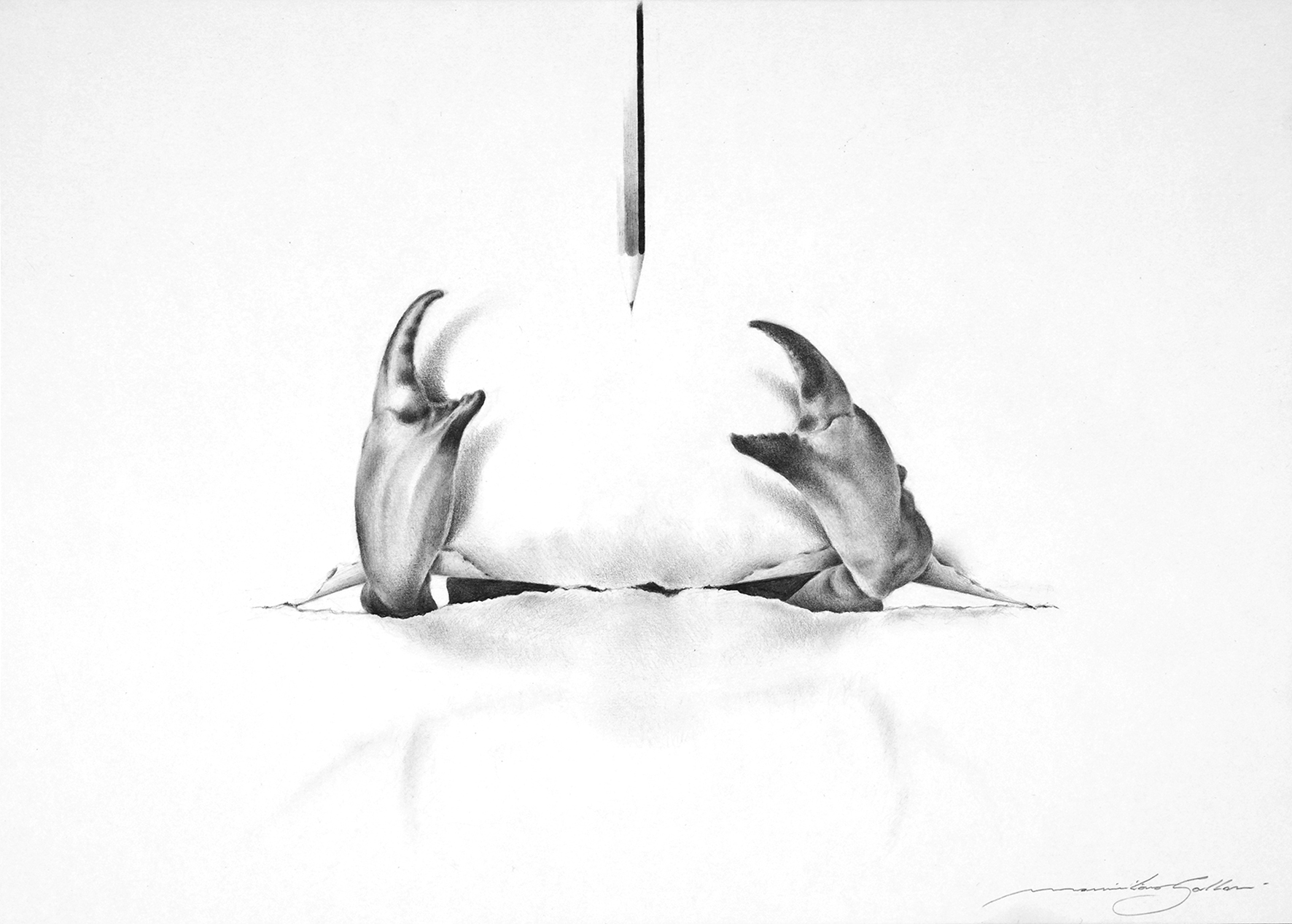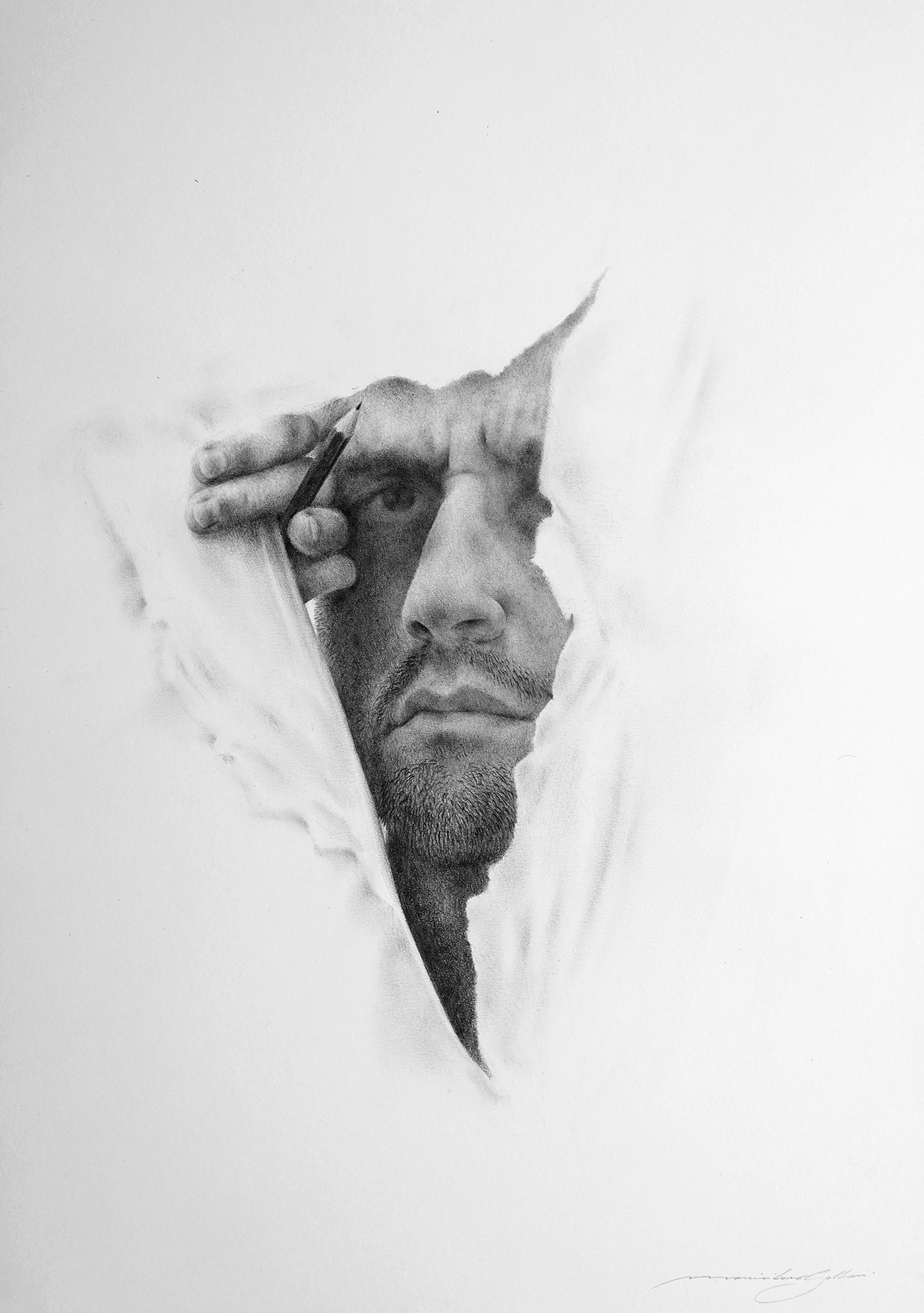«Sono arrivato al disegno per gradi, passando per la regia e la video arte, tuttavia il disegno mi ha sempre accompagnato nella crescita; fin da piccolo ho respirato grafite e odorato olio e colore. É una necessità intrinseca, disegnare è come respirare, fa parte della mia routine quotidiana ed esorcizza paure, libera pensieri negativi e li trasforma in opere che prendono vita e che inseguono istintivamente la libertà».