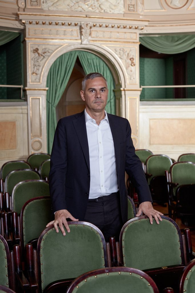 La Fondazione Trussardi festeggia 20 anni di attività nomade, di mostre coinvolgenti che hanno riattivato luoghi spesso nascosti o sconosciuti della città di Milano attraverso la forza di coesione e riscoperta dell’arte. Anche in occasione di questo anniversario, la presidente Beatrice Trussardi e il curatore Massimiliano Gioni non si sono smentiti, presentando al pubblico la mostra personale di Diego Marcon “Dramoletti” presso il Teatro Gerolamo: un melodramma surreale, inquietante e ipnotico. Abbiamo parlato con Massimiliano Gioni di questo ultimo progetto, del suo approccio curatoriale, del suo rapporto con la città e di questi anni di progetti assurdi quanto estremamente contemporanei, complessi e stratificati.