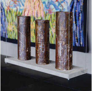Il gruppo scultoreo “Transtamburo” riassume l’essenza delle nuove tecnologie, come la stampa 3D e l’utilizzo dei materiali tradizionali, come la ceramica. Si fondono tradizione, innovazione e l’arte in tutte le sue forme espressive, dalla realizzazione del soggetto, allo studio del suono che esso genera.