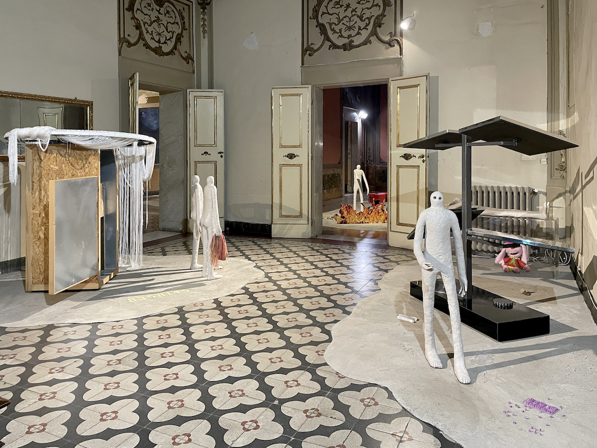 Può il reale fondarsi su un’unica verità? Fino alla fine di giugno l’associazione Alchemilla ospita nella sua sede di Palazzo Vizzani “Fuori Terra”, mostra personale di Mattia Pajè. L’esposizione, curata da Giovanni Rendina, promossa da Istituzione Bologna Musei e parte del Main program di Art City, è frutto del lavoro di sperimentazione dell’artista avvenuto negli ultimi due anni, in dialogo con le sale suggestive del palazzo. Il gruppo scultoreo eterogeneo che abita le stanze di Alchemilla crea una realtà altra, magica e straniante, dove l’estetica new age e quella della televisione commerciale si intrecciano in una continua tensione comunicativa.