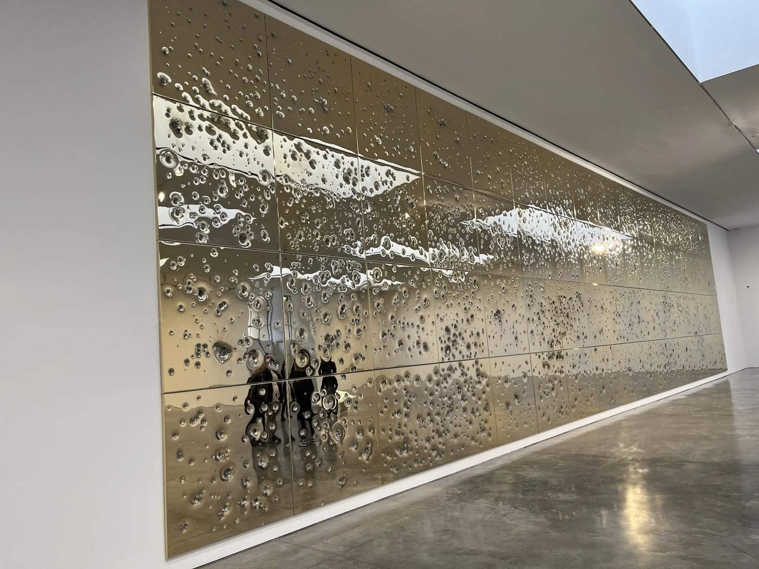 L’opera inedita che dà il titolo alla mostra di Maurizio Cattelan da Gagosian, Sunday, è composta da 64 pannelli quadrati di acciaio, placcati in oro a 24 carati, tempestati da ammaccature di proiettili, ognuno vendibile separatamente: denaro e violenza, plata y plomo per dirla in maniera più pulp. Il lavoro però è troppo simile a quello esposto da James in questi stessi giorni – a New York c’è la art week di Frieze – in uno showroom nel grattacielo dell’archistar Norman Foster al 425 di Park Avenue: una sequenza di pannelli di acciaio inossidabile lucidati a specchio, ammaccati dagli spari. Solo che questa serie di James risale a circa dieci anni fa ed è stata esposta già in varie sedi tra cui, nel 2011, alla Brand New Gallery di Milano.