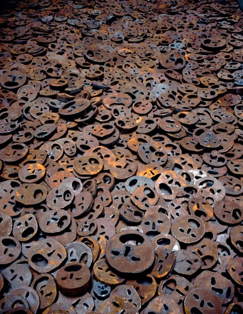 Persone che anche Menashe Kadishman non ha mai voluto dimenticare. Lui, che nel 1978 aveva rappresentato Israele alla Biennale di Venezia – si presentò vestito da pastore e trasformò il padiglione in un vero e proprio ovile abitato da un gregge di 18 pecore vive su cui aveva apposto il suo marchio, una pennellata di colore blu, creando creando un’opera d’arte vivente in costante divenire, espressione della forza di Madre Natura – nel 1997 realizzò all’interno di uno dei Memory Voiddel Jewish Museum di Berlino, Shalechet, un’installazione composta da diecimila dischetti di ferro, lavorati uno per uno, rappresentativi dei volti angosciati di tutte le persone sacrificate in nome di qualsiasi cosa. I volti metallici sono distribuiti sul pavimento e, al passaggio dei visitatori a cui è permesso calpestarli, producono un rumore disturbante, simile a quello delle catene.Questo rumore dei passi sul metallo è lo stesso che Mirosław Bałka usa per evocare il terrore di chi veniva rinchiuso nei vagoni o nelle camere a gas. Nella sua How It Is non usa simboli né foto ma realizza una grossa scatola d’acciaio, sollevata da terra, attraverso cui la memoria passa attraverso i sensi, il rumore.