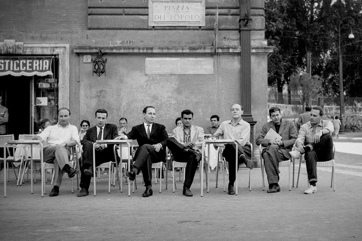 Il Gruppo Crack in Piazza del Popolo, Roma, 1960. Ph. Virginia Dortch Dorazio – © VIRGINIA DORTCH DORAZIO, by SIAE 2025 – © The Estate of Virginia Dortch Dorazio – ARS, NY.